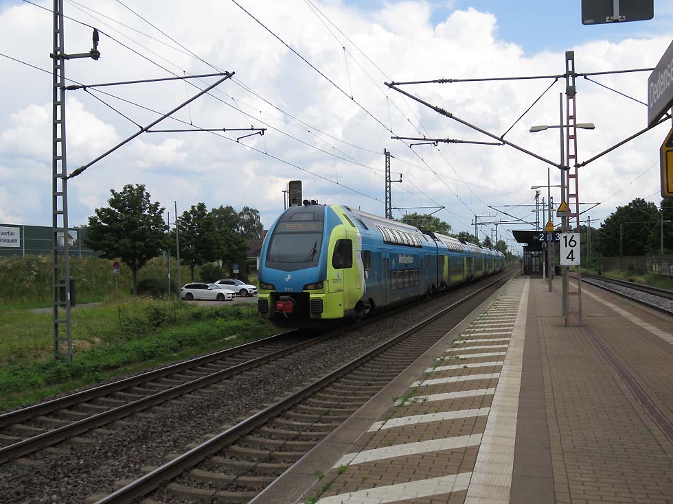 ![]() Dedensen Gümmer, 27.06.24: 445 613 kommt von Hannover westwärts gefahren. (Westfalenbahn) |