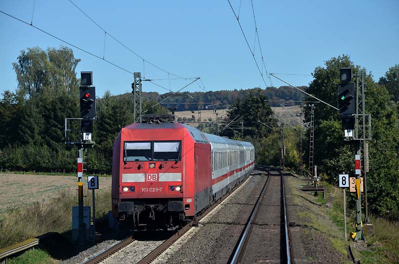 ![]() 120 111 mit Ersatz IC am 9.11. kurz vor Erreichen des Zielbahnhofs Frankfurt- Süd. |