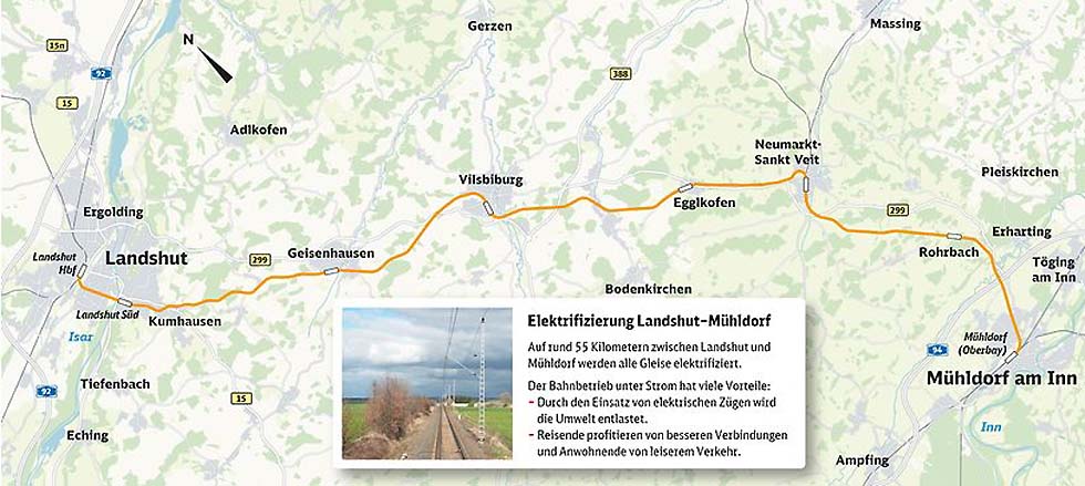 30.01.2023 Bahn elektrifiziert 55 Kilometer Schiene zwischen Landshut und Mühldorf.. Zwischen Landshut und Mühldorf elektrifiziert die Deutsche Bahn 55 Kilometer Schiene. Gut für die Umwelt und gut für die Region, befindet DB-Projektleiterin Janett Fack: „Künftig kommen Fahrgäste noch klimaschonender vom Inn zur Isar. Leise, elektrische Züge sorgen für weniger Lärm entlang der Strecke.“ Die im Auftrag d... |