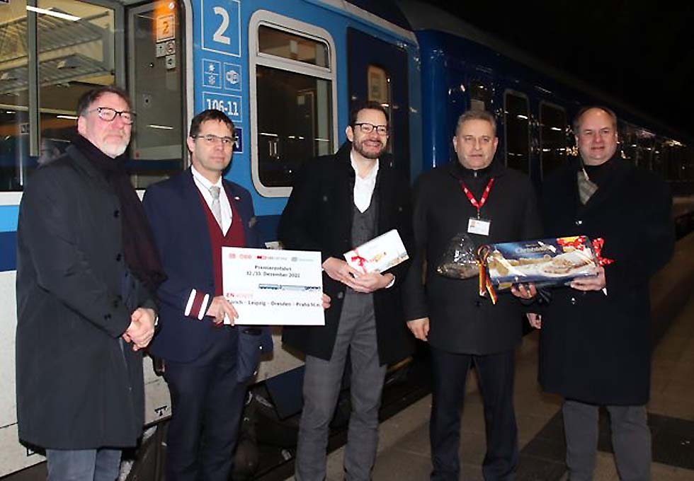 13.12.2022 Neues Angebot zum Winterfahrplan: Erster Nachtzug aus Zürich erreicht Dresden.. Zusätzliche frühe Verbindung nach Prag für eine Tagesreise • Über Nacht von Dresden nach ZürichDer erste Nachtzug aus Zürich erreichte heute pünktlich 7.05 Uhr Gleis 1 des Dresdner Hauptbahnhofs. Der Oberbürgermeister der Landeshauptstadt Dresden, Dirk Hilbert, Stephan Berger, Leiter der Abteilung Mobilität des Sächsisc... |