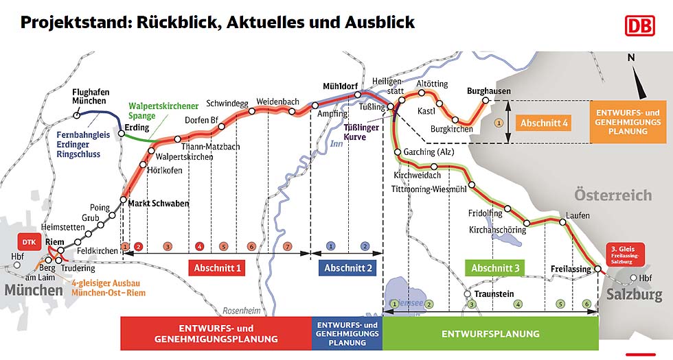 22.03.2022 Neuer Zeitplan für das Ausbauprojekt München – Mühldorf – Freilassing (ABS 38).. Erste Abschnitte genehmigungsreif • Rahmenbedingungen der Planungsabschnitte verändern sich • Umfangreiche Öffentlichkeitsbeteiligung wird fortgeführtNeue Rahmenbedingungen beim Ausbauprojekt München - Mühldorf – Freilassing führen zu einem neuen Zeitplan. Darüber informierte der DB-Konzernbevollmächtigte Klaus-Dieter... |