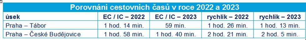 'Im Fahrplan 2023 werden wir unser Angebot im Fern- und Überlandverkehr weiter verbessern, um mehr Kunden zu erreichen und ihnen eine umweltfreundliche Alternative zur Fahrt mit dem Auto oder Bus zu bieten. Anstatt in Warteschlangen zu stehen, freie Parkplätze zu suchen und mit dem Auto zu fahren, gibt es eine Alternative in Form von modernen Zügen, in denen man während der Fahrt am Laptop arbeiten, im Internet surfen, Filme ansehen oder einfach nur lesen und Kaffee trinken kann', sagt Michal Krapinec, Vorstandsvorsitzender und CEO der CD. Im Zusammenhang mit dem Fahrplan 2023 fügt er hinzu: 'Ich habe die beste Nachricht für Kunden, die zwischen Prag und der Region Südböhmen reisen. Dank der Eröffnung von zwei Umsteigebahnhöfen auf dem Korridor 4 werden sich die Fahrzeiten dort deutlich verkürzen. Der Zug wird dort kein 'Aschenputtel' mehr sein, sondern eine echte Lösung für den Transport zu Treffen, zur Arbeit oder zum Vergnügen'. Rekordgeschwindigkeit nach Südböhmen und eine neue Verbindung über Tabor nach Wien Die EuroCity/InterCity-Verbindungen werden die Strecke Prag - Ceske Budejovice in 1 Stunde 40 Minuten und von Prag nach Tabor in 59 Minuten zurücklegen. In der Gegenrichtung sind sie 2 Minuten langsamer. Auch die Fahrzeit zwischen Prag und dem Donaukorridor nach Linz wird von derzeit 4 Stunden 17 Minuten auf 3 Stunden 45 Minuten verkürzt. In Linz gibt es Anschluss an Züge nach Salzburg, Innsbruck, Zürich, Villach und andere Orte in Süd- und Westeuropa. 'Die Verkürzung der Fahrzeiten auf dem 4. Korridor eröffnet neue Möglichkeiten für die Entwicklung des Tourismus in Südböhmen, bietet aber auch neue Chancen für die Südböhmen, die die Bedingungen für den regelmäßigen Pendelverkehr zur Arbeit oder zum Studium in der Hauptstadt verbessern werden', fügt Jiri Jeseta, Vorstandsmitglied und stellvertretender Generaldirektor für Personenverkehr der CD, hinzu. Auf der Strecke Prag - Ceske Budejovice / Ceske Velenice verkehren die Schnellzüge ebenfalls kürzer und halten an 7 zusätzlichen Bahnhöfen im Vergleich zu den EC/IC-Zügen. Die Strecke zwischen Prag und der südböhmischen Metropole kann in 2 Stunden und 5 Minuten zurückgelegt werden, d.h. 16 Minuten schneller als nach dem derzeitigen Fahrplan. Vergleich der Reisezeiten in den Jahren 2022 und 2023