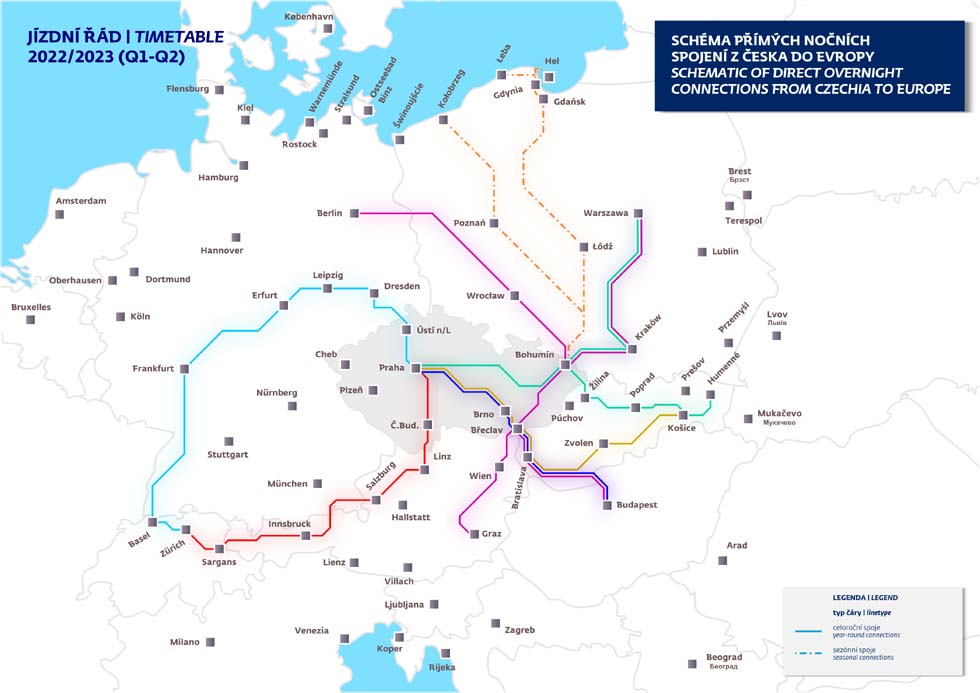 Die Nachtzug-Renaissance kommt in die Barockmetropole Dresden. Komfortabel wie in einem kleinen Hotelzimmer, ökologisch, gut schlafen mit schönen Träumen und doch zum Ziel rollen. Einschlafen an der Elbe, Aufstehen am Rhein oder Limmat. Das bietet die neue direkte Nachtverbindung Canopus. Der Zug wird jeden Tag in Prag starten und fährt über Bad Schandau, Dresden, Riesa und Leipzig nach Südwestdeutschland und in die Schweiz, mit Halt z.B. in Karlsruhe, Baden-Baden, Offenburg, Freiburg (Breisgau), Basel und endet in Zürich. Vom Knotenpunkt Basel SBB und Zürich HB werden Anschlüsse in verschiedene schweizerische Regionen wie Graubünden, Tessin, Gotthard, Bern, Interlaken oder die Romandie, und nach Italien (Mailand) oder Frankreich (Mulhouse) zur Verfügung stehen. „Wir bieten jetzt eine komfortable und ökologische Reise über Nacht von Tschechien und Sachsen nach Südwestdeutschland und in die Schweiz. Wir möchten mit unseren Partnern eine Alternative zum Flugverkehr oder individueller Fahrt mit dem Auto bieten. Die Reisenden können zwischen komfortablen Schlafwagen mit Deluxe-Abteilen oder klassischen Schlafwagenabteilen, touristischen Liegewagen oder preiswerten Sitzwagen auswählen. Der Zug bietet auch Fahrradplätze, das werden die aktiven und sportlichen Reisenden schätzen, die zum Rheinradweg oder in die vielen interessanten schweizerischen Radregionen fahren möchten,“ so Michal Krapinec. CEO der Tschechische Bahn. Der neue Zug startet in Prag um 18:26 Uhr als Tagesverbindung EuroCity auch mit Wagen der 1. Klasse und Speisewagen und sorgt auch für eine letzte Tagesverbindung von der tschechischen Hauptstadt nach Dresden, ca. eine Stunde später als derzeit. Dresden verlässt der Zug um 21:03 Uhr. In Leipzig wird er mit dem Nightjet Berlin–Zürich vereinigt und fährt um 23:46 Uhr weiter. Ankunft in Basel ist um 7:19 Uhr und in Zürich um 9:05 Uhr. In der Gegenrichtung fährt der Nachtzug in Zürich um 19:59 Uhr ab, Basel verlässt er um 21:13 Uhr und in Dresden kommt er um 7:06 Uhr an. Auch in dieser Richtung fährt er ab Leipzig um 5:45 Uhr als Tageszug mit mehreren Sitzwagen als erste Tagesverbindung aus Dresden nach Prag, etwa eine Stunde früher als heute. Der Zug kommt in Prag um 9:38 Uhr an. So bietet sich auch die Möglichkeit zu einer Tagesreise von Leipzig und Riesa nach der goldenen Stadt an der Moldau. Für die Nachtverbindung stehen Sparpreise zur Verfügung. Die Nachtreise zwischen allen Einstiegs- und Ausstiegsbahnhöfen kostet im Schlafwagen ab 89 € und im Liegewagen ab 69 € (Globalpreis). Die Fahrkarten können in den e-shops der Bahnverwaltungen oder an der Kasse der kooperierenden Partner, wie DB, gekauft werden. Die neue Nachtverbindung Prag–Dresden–Basel–Zürich wird von der Tschechischen Bahn mit ÖBB und SBB organisiert und in Kooperation von ÖBB, SBB und DB betrieben. Die Tschechische Bahn betreibt auch weitere Nachtverbindungen. Reisende können von Prag aus auch z.B. nach Budapest oder in die Slowakei, in Richtung Poprad (Hohe Tatra), Košice und Humenné, inklusive Autoreisezug von Prag in wichtige Bahnhöfe in der Slowakei, kommen. Die Reisenden aus Sachsen können dann eine bequeme Bahnreise nur mit einem Umstieg in Prag bis nach Budapest mit seinen weltbekannten Thermen oder in die slowakischen Bergen unternehmen.