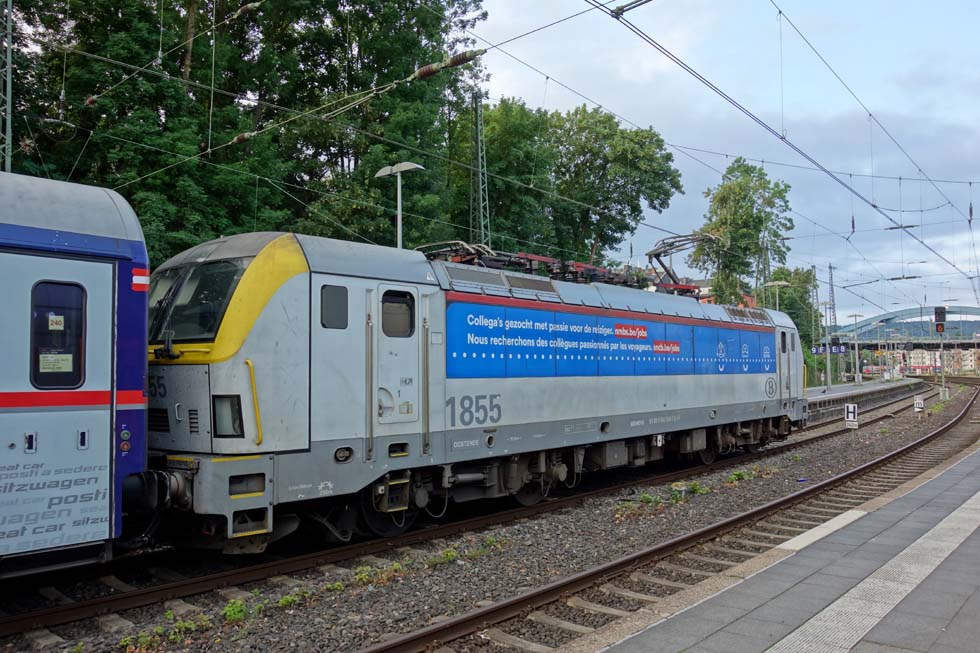 Am 26.06.2023 übernahm die HLE sncb 1855 in Aachen den NightJet 50490/424 für den Streckenabschnitt nach Belgien.