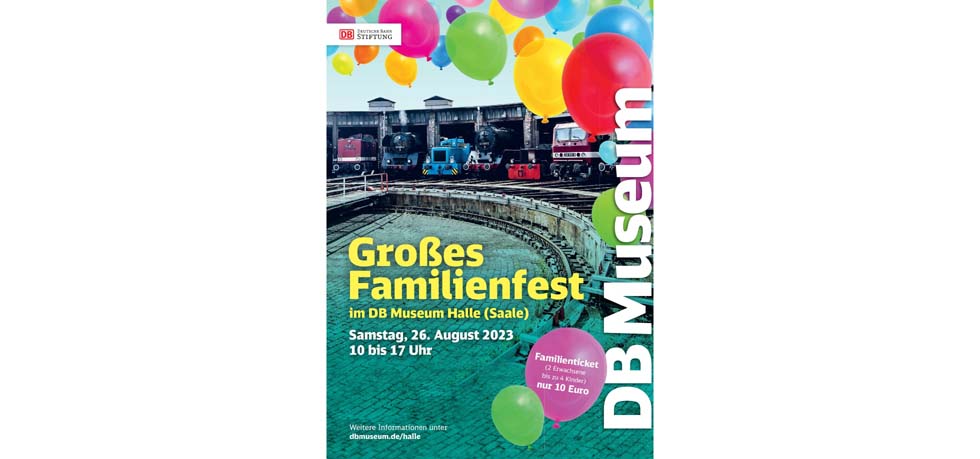 Zum ersten Mal nach der Corona-Pandemie feiert das DB Museum Halle (Saale) am Samstag, 26. August 2023 wieder sein traditionelles Sommerfest. In diesem Jahr stehen Kinder und Familien im Mittelpunkt des Festprogramms: Kleine Eisenbahnfans dürfen sich auf ein abwechslungsreiches Programm mit Zaubershows, Figurentheater, Mitmach-Aktionen und vielen Lokomotiven zum Bestaunen und Anfassen freuen. Von 10 bis 17 Uhr verwandelt sich der historische Lokschuppen IV, in dem das DB Museum Halle (Saale) beheimatet ist, in eine Eisenbahn-Erlebniswelt für Jung und Alt. Museumsdirektor Dr. Oliver Götze: „Unser Sommerfest gehört zu den Höhepunkten im Veranstaltungskalender des DB Museums in Halle (Saale). Dank der Unterstützung vieler Ehrenamtlicher können wir 2023 nicht nur ein spannendes Programm für Kinder und Familien bieten, sondern werden auch viele unserer Fahrzeuge auf der Drehscheibe präsentieren. Ein Highlight für alle Eisenbahnfans.“ Fahrzeugpräsentationen vor dem Ringlokschuppen und auf der Drehscheibe Über den gesamten Tag verteilt werden zu festen Uhrzeiten Fahrzeuge auf der Drehscheibe gezeigt. Die historischen Lokomotiven werden so zum perfekten Fotomotiv und können von allen Seiten bestaunt werden. Zusätzlich werden Fahrzeuge aus dem Bestand des DB Museums Halle (Saale) vor dem Ringlokschuppen ausgestellt. Fachkundige Erläuterungen durch ehrenamtliche Mitarbeitende des DB Museums runden die Vorstellung ab und ermöglichen einen spannenden Einblick in die Geschichte der Deutschen Reichsbahn der DDR. Ein buntes Programm für die ganze Familie Für Kinder und Familien hat das Sommerfest in diesem Jahr besonders viele Attraktionen zu bieten. Mit gleich drei Vorstellungen des Stückes „Die verflüxte Zipfelmitze“ verzaubert Puppenspieler Sebastian Günther Kinder ab vier Jahren. Sebastian Günther trat bereits bei mehreren Puppenspielfestivals auf und ist anlässlich des Sommerfests 2023 zum ersten Mal zu Gast im DB Museum Halle (Saale). Im Außenbereich des Museums bringt Zauberer Handoni mit seinen magischen Tricks Kinderaugen zum Leuchten. Der Magier hat ein buntes Repertoire, mit dem er nicht nur Kinder begeistern wird. Clown-Dame Filotta und ihr Team modellieren im Lokschuppen kreative Luftballonfiguren, lassen Riesenseifenblasen über das Freigelände schweben und schminken Kinder zu lustigen Tiergestalten. Zudem wird eine Mitfahr-Eisenbahn unter freiem Himmel ihre Runden drehen und die ehrenamtlichen Mitarbeitenden des Museums bieten Führungen durch den Lokschuppen an. Die LGB-Modellbahn wird in Betrieb sein und auch für das leibliche Wohl wird gesorgt – mit Bratwurstbrötchen, Gulaschkanone, Kuchen und einem Eisstand der „Eisburg“. Datum: Samstag, 26. August 2023 Öffnungszeiten: 10 bis 17 Uhr Eintritt: Erwachsene 5 Euro / Kinder (6 bis 17 Jahre) 2,50 Euro / Familien (zwei Erwachsene und bis zu vier Kinder) 10 Euro DB Museum Halle (Saale) Berliner Straße 241 06112 Halle (Saale) dbmuseumhalle@deutschebahnstiftung.de www.dbmuseum.de/halle