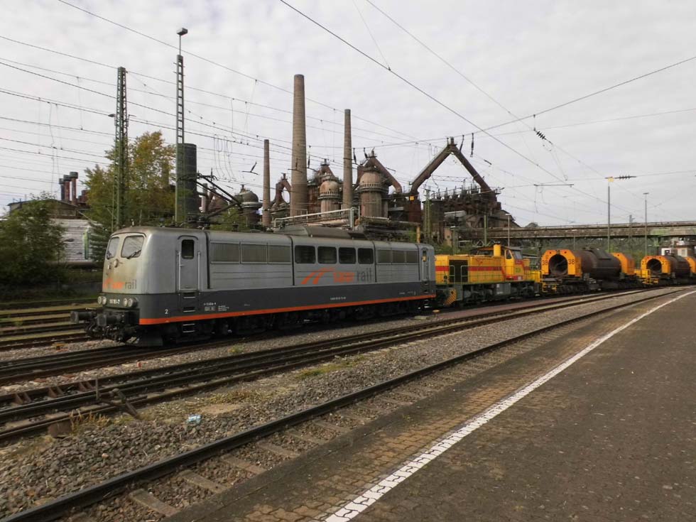 Saarrail 151 161 und Dillinger Hütte 1275 811 vor dem Welterbe „Völklinger Hütte“.