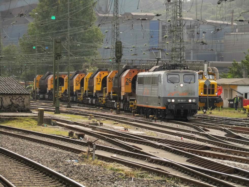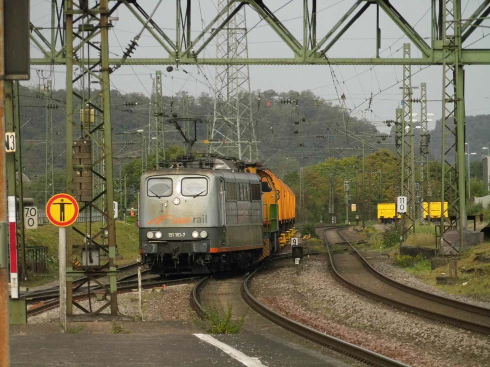 Gleich wird es warm: Saarrail 151 161 hat die 12745 811 der Dillinger Hütte und eine Handvoll Glühwürmchen dabei für die Saarstahlwerke.