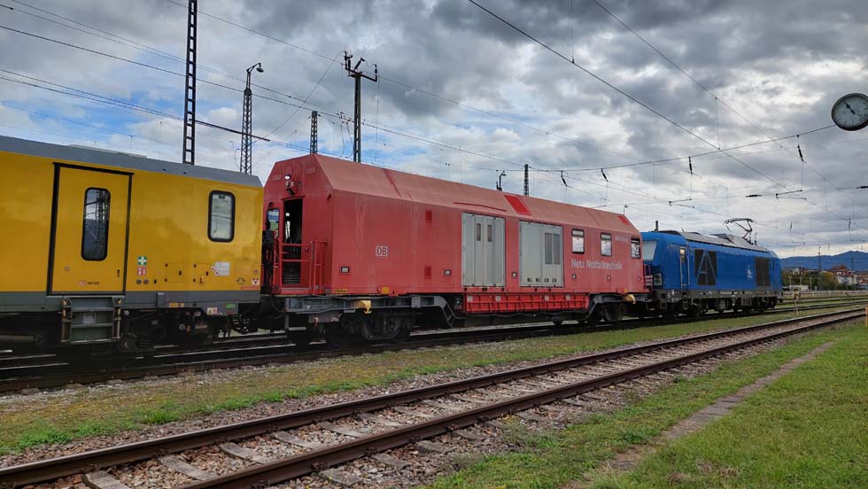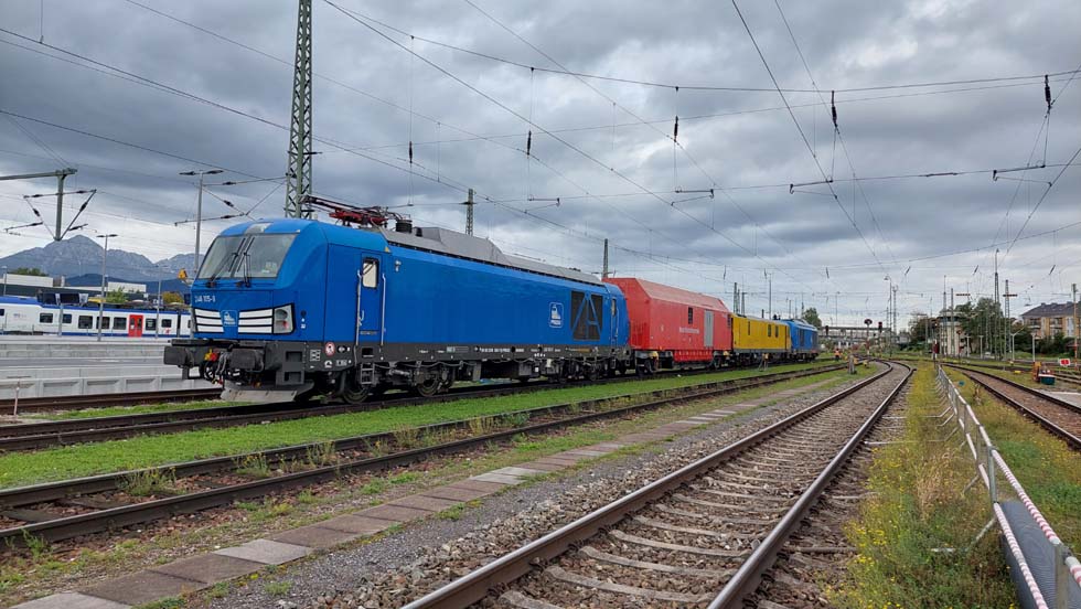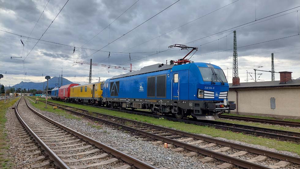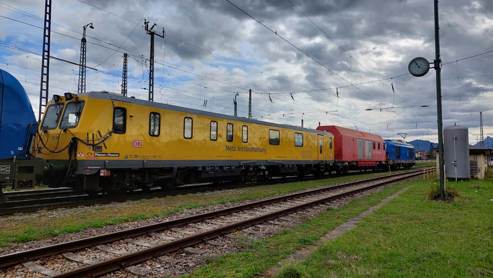 Nicht alltäglicher Alltag: DB Netz in Oberbayern  248 105 mit 248 106, dazwischen DB Netz Notfalltechnik und DB Netz Instandhaltung am Münchner Heimeranplatz, 29.09.2024. (Mario Pahl) Die beiden PRESS-Loks 248 105 und 106 waren in den letzten Tagen in Oberbayern unterwegs. Der Messzug bestand aus zwei Wagen - 720 301 und einem DB Netz Notfalltechnik-Wagen, der von den beiden Loks im Sandwich bespannt wurde. Die Aufnahmen unten zeigen den Zug am 01. Oktober 2024 in Freilassing. (alle Peter Bleibinger)
