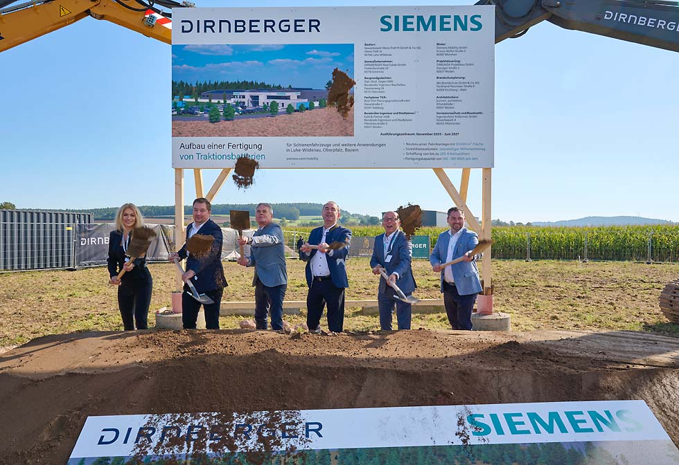 Investition von rund 35 Millionen Euro schafft bis zu 200 neue Arbeitsplätze Klarer Beitrag zur Verkehrswende und zur Wettbewerbsfähigkeit der Bahnindustrie in Deutschland und Europa Siemens Mobility hat heute in Luhe-Wildenau gemeinsam mit Partnern den symbolischen Spatenstich für eine neue Fertigung von Batteriesystemen für Schienenfahrzeuge gefeiert. Auf einem rund 20.000 Quadratmeter großen Gelände entsteht eine hochmoderne Produktionsstätte, in der künftig mit bis zu 200 Mitarbeitenden Batteriesysteme für Siemens-Regionalzüge, Lokomotiven und externe Kunden gefertigt werden. Insgesamt fließen Investitionen in Höhe von etwa 35 Millionen Euro in das Projekt, davon rund 22 Millionen Euro von Siemens Mobility, wovon 2,7 Millionen Euro als Zuschuss aus bayerischen Förderprogrammen stammen. Damit unterstreicht Siemens Mobility sein Bekenntnis zu Deutschland als Produktions- und Innovationsstandort, leistet einen wichtigen Beitrag zur Verkehrswende und verwirklicht zugleich ein Versprechen der „Made for Germany“-Initiative, Wachstum und Wettbewerbsfähigkeit in Deutschland voranzubringen. Die Fertigstellung der Gebäude ist für Frühjahr 2027 vorgesehen, die Serienproduktion startet im Oktober 2027. Ein besonderer Höhepunkt der Veranstaltung war die offizielle Übergabe des Förderbescheids durch den Bayerischen Staatsminister Hubert Aiwanger. „Mit der neuen Batteriesystemfertigung in Luhe-Wildenau bekennen wir uns klar zu Deutschland als Produktions- und Innovationsstandort. Wir investieren gezielt in Schlüsseltechnologien, schaffen hochwertige Arbeitsplätze in der Region und stärken damit die Wettbewerbsfähigkeit der heimischen Bahnindustrie. Gleichzeitig leisten wir einen wichtigen Beitrag zur Verkehrswende und setzen ein starkes Signal für die Zukunftsfähigkeit des Wirtschaftsstandorts Deutschland“, sagt Karl Blaim, CFO von Siemens Mobility. „Dieses Projekt bringt Bayern technologisch und wirtschaftlich voran. Moderne Batterien für Züge herzustellen ist ein Zukunftsthema, von dem nicht nur Luhe-Wildenau und die Oberpfalz, sondern ganz Bayern profitiert. Siemens Mobility entwickelt hier in Luhe-Wildenau Batteriesysteme, die sowohl Hochleistung beim Anfahren oder Beschleunigen geben als auch hohe Energie für lange Strecken bieten. Wir bekommen also leistungsfähigere Züge. Gleichzeitig entstehen viele hochwertige Arbeitsplätze in der Region. Das Projekt stärkt damit langfristig unseren Wirtschaftsstandort“, ergänzt Hubert Aiwanger, Bayerischer Wirtschaftsminister. Batteriesysteme – Schlüsseltechnologie für Dekarbonisierung Siemens Mobility ist seit 2017 Marktführer bei batterieelektrischen Regionalzügen und plant auch den Bau von batterieelektrischen Lokomotiven für den Güterverkehr. Grundlage hierfür ist die Schlüsseltechnologie Batteriesystem, die deutlich höhere Anforderungen an Robustheit und Langlebigkeit erfüllen muss als vergleichbare Lösungen im Automotive-Bereich. Typische Kapazitäten liegen bei rund 500 Kilowattstunden für Regionalzüge und bis zu 2.000 Kilowattstunden für Lokomotiven. In Luhe-Wildenau entstehen künftig komplette Batteriesysteme einschließlich eines innovativen Batterie-Management-Systems (BMS), das Siemens Mobility gemeinsam mit der Münchener Firma Stercom entwickelt. Das BMS überwacht und steuert die Batterie, sorgt für einen sicheren Betrieb und maximiert Effizienz sowie Lebensdauer. Die Batteriezellen stammen von externen Herstellern wie Toshiba, die Systemintegration erfolgt bei Siemens Mobility. Standortvorteil und Investition in die Zukunft Bereits heute findet in Luhe-Wildenau die Vormontage von Batteriesystemen statt. Auf dieser langjährigen Erfahrungsbasis baut Siemens Mobility nun die neue Systemfertigung auf. Künftig können hier im Dreischichtbetrieb bis zu 120 Megawattstunden Batteriekapazität pro Jahr produziert werden. Dafür investiert Siemens Mobility rund 22 Millionen Euro in die Entwicklung einer modularen Batteriefamilie und des BMS. Ein weiterer Teil der Investition fließt in Fertigungs- und Automatisierungstechnologie, darunter modernste Schweißverfahren. Der Freistaat Bayern unterstützt das Projekt mit 2,7 Millionen Euro aus Landesförderprogrammen. Der Standort wurde in Zusammenarbeit mit dem regionalen Projektentwickler und Bauträger Dirnberger Real Estate GmbH sowie der DIMONDA Projektbau GmbH entwickelt. Die Unternehmen fungieren als Investoren und Vermieter des Standorts und übernehmen Steuerung und Realisierung des Projekts. Mit der neuen Batteriesystemfertigung stärkt Siemens Mobility nicht nur Luhe-Wildenau als zukunftsfähigen Industriestandort, sondern setzt zugleich ein klares Signal für die Wettbewerbsfähigkeit und Innovationskraft des Wirtschaftsstandorts Deutschland. Quelle:/Fotos: Siemens |