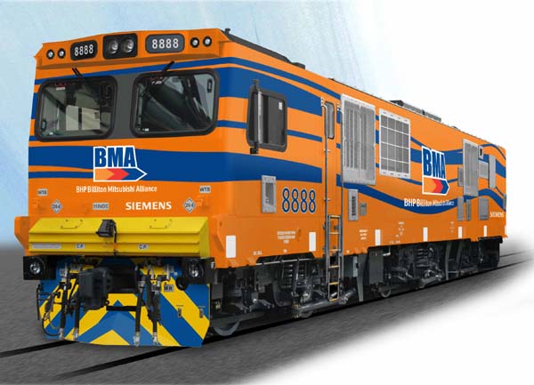 Siemens liefert 13 Lokomotiven für australisches KohleschienennetzBHP Billiton Mitsubishi Alliance (BMA) bestellte 13 Schwerlastlokomotiven des Typs E40AC.BMA wird die Loks für den Kohletransport im australischen Bundesstaat Queensland von den Kohlegruben Caval Ridge und Daunia zum Kohleterminal in Hay Point einsetzen. BMA kann mit den weltweit leistungsstärksten AC-Schmalspurlokomotiven jährlich bis zu 15 Mio. Tonnen Kohle von der Grube zum Hafen transportieren. Durch den Vertrag mit BMA erhöht sich die aus E40ACLokomotiven von Siemens bestehende Flotte im australischen Kohleschienennetz auf 100 Stück. Die Lokomotiven werden im Münchner Werk von Siemens gebaut und getestet. Dieser Lokomotivtyp wurde speziell für den schweren Güterzugverkehr entwickelt. Die Kohleganzzüge werden aus je drei E40AC Lokomotiven und 124 Waggons bestehen und eine Nutzlast von ca. 11.000 Tonnen haben. Mit einer Leistung von 4.000 kW und einer Dauerzugkraft von 450 kN bis 32 km/h ist die E40AC die weltweit leistungsstärkste elektrische Schmalspurlokomotive. Ausgestattet ist sie mit einem Bremssystem nach AAR, drahtloser und drahtgebundener Fernsteuerung und einem elektronisch gesteuerten, pneumatischen Bremssystem. Die elektrische Ausrüstung der E40AC wurde von den Class 3700 Refurbishment-Lokomotiven übernommen. 63 Fahrzeuge des Typs 3100 / 3200 wurden mit Siemens-Ausrüstung auf Drehstromantriebstechnik umgerüstet. Das elektrische Bremssystem der E40AC kann die Bremsenergie in das Fahrleitungssystem zurückführen. Dadurch lassen sich jährlich nicht nur beträchtliche Energiemengen einsparen, sondern auch die CO2-Emissionen erheblich senken. Die als Schwerlastlokomotive ausgelegte E40AC ist für die Schmalspursysteme Australiens und Südafrikas ideal geeignet. Der Wagenkasten wurde so konstruiert, dass er Zug- und Druckkräfte bis 4 MN zulässt. Er ist mit einer AAR-Kupplung des Typs F sowie Aufkletterschutz ausgerüstet und verfügt für die Sicherheit des Personals über einen verbesserten Führerraumschutz. Das Drehgestell ist eine Entwicklung von Siemens Graz. Der Rahmen ist eine Schweißkonstruktion, in die alle Anschlusspunkte für die Traktionsanlage, Antriebseinheiten und Drehgestell-Bremsanlage integriert sind. Die Rahmen des mittleren Drehgestells und der Enddrehgestelle sind austauschbar. Die Drehgestell-Bremsanlage besteht aus einer Klotzbremseinheit pro Rad. Feststellbremsen sind am mittleren Drehgestell montiert. Im März 2006 erteilte der Betreiber Queensland Rail einen Auftrag über die Lieferung von 20 neuen E40AC-Lokomotiven. Im August 2007 folgte die Bestellung weiterer 25 Loks. Auch Australiens größter privater Bahnfrachtbetreiber Pacific National bestellte in mehreren Losen mittlerweile 42 Lokomotiven dieses Typs. Mit dem neuen Auftrag erweitert sich die Flottenstärke der E40AC-Lokomotiven im australischen Kohleschienennetz auf 100.