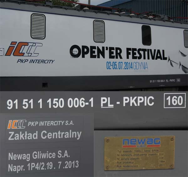 91 51 1 150 006-1 PL-PKPIC newag Gliwice - Typ 104Ec - Serie EP09 - Nummer 034 - Jahr 1994 - Modernisiert 2011 PKP Intercity S.A. Zaklad Centralny Newag Gliwice S.A. Napr. 1P4/2 19.7.2013 Quelle:/Fotos: S-Bahnfahrgast | |