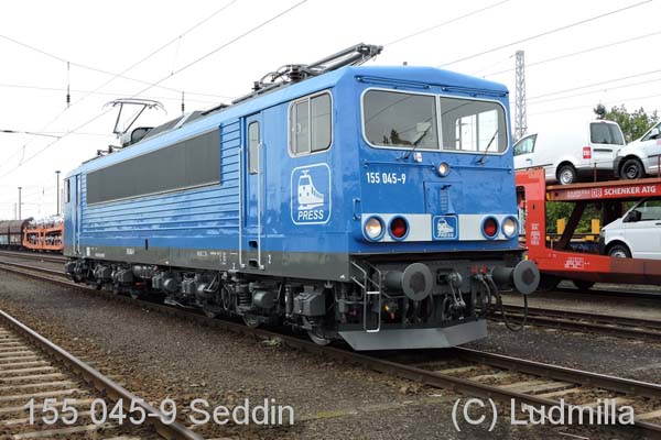 Heute (12.09.2014) kamen die Kollegen aus dem RAW Dessau wieder mal zur Werkstattfahrt nach Seddin. Die frisch renovierte 155 045-9 der PRESS wollte geprüft werden. Da die Abnahme noch nicht war wie immer ohne HU Datum. Sah aber schon gut aus und wenn nichts aufregendes dazwischen kommt wird die auch bald wieder überall zu sehen sein. Na dann allzeit gute Fahrt dem Energiecontainer und lieber blau wie auf dem Schrott.