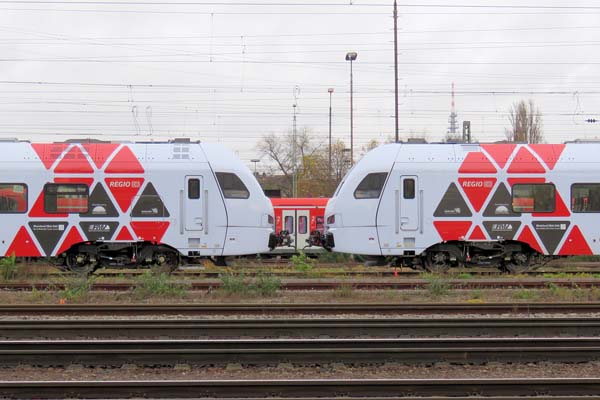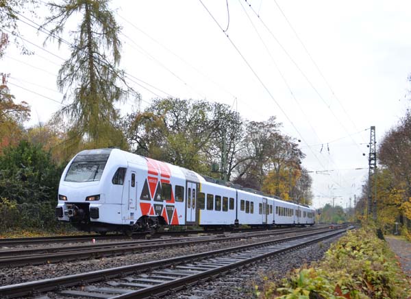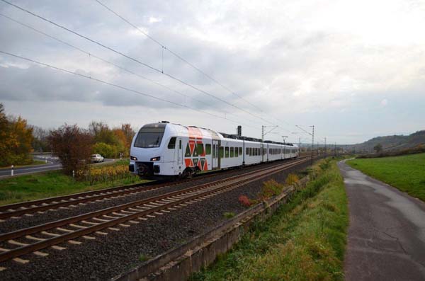 Neue Flirts für Rheinland PfalzAb 14. Dezember 2014 sollen die 28 neuen hellviolett-rot-grauen Flirt3 von DB Regio den Verkehr im RE-Netz Südwest E-Traktion übernehmen. Dann verkehren die auffallenden Züge auf den Linien RE 1 (Koblenz – Trier – Saarbrücken – Ludwigshafen – Mannheim - zwischen Koblenz und Trier gekuppelt mit den neuen CFL-KISS, die ab Trier weiter nach Luxemburg verkehren), RE 2 (Koblenz – Frankfurt), RE 4 (Mainz – Ludwigshafen – Karlsruhe) und RE 7 (Mainz – Ludwigshafen – Mannheim). Aus diesem Grund laufen aktuell die Personalschulungen im Raum Trier/Koblenz (429 104 und 105), Saarbrücken (429 107) sowie Mannheim/Mainz (429 109 und 110).