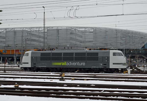 Die 103 222, die jetzt für das EVU RailAdventure unterwegs ist, war am 5.2.2015 in München Hbf abgestellt