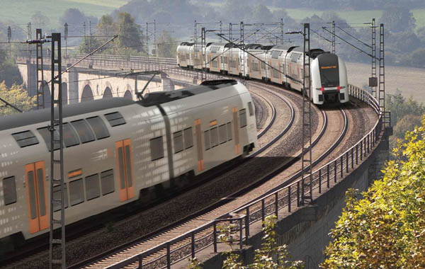 „Mit den neuen RRX-Fahrzeugen wird bereits ab 2018 auf den bestehenden RE-Strecken mehr Komfort geboten. Die Pendler bekommen endlich ein attraktives Angebot. Die alten Züge werden sukzessive ersetzt. Nach dem Ausbau der RRX-Schieneninfrastruktur auf der Kernstrecke zwischen Köln und Dortmund wird NRW ein Spitzenangebot bieten. Dann können täglich mehr als 31.000 Pkw-Fahrten auf die Bahn verlagert werden. Allen Anbietern gebührt Respekt dafür, dass sie sich um diese große Leistung beworben haben.“ Im nächsten Schritt müssen die politischen Gremien der beteiligten Zweckverbände, Verkehrsverbund Rhein-Ruhr (VRR), Nahverkehr Rheinland (NVR), Nahverkehr Westfalen-Lippe (NWL), Schienenpersonennahverkehr Rheinland-Pfalz Nord (SPNV-Nord) und der Nordhessische Verkehrsverbund (NVV) der Vergabeentscheidung zustimmen. Danach gilt eine zehntägige Einspruchsfrist bis zur endgültigen Zuschlagserteilung. Quelle:/Fotos: VRR Bild: Siemens/VRR | |