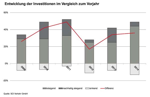 Die Aussicht auf das erste Halbjahr 2015 ist getrübt. Die Zukunftserwartungen sind so niedrig wie seit 1,5 Jahren nicht mehr. Die Gesamtbranchenaussicht bleibt schwach positiv. Der gestiegene Anteil an ungünstigen Bewertungen durch die befragten Topmanager basiert auf verschiedenen Verunsicherungen an Markt: Der Merger von CNR und CSR in China lähmt den wichtigsten Einzelmarkt, die Signale des europäischen Marktes sind uneinheitlich und ein Ende der Wirtschaftskrise in Russland ist nicht absehbar. Die differenzierte Marktentwicklung zeigt sich auch am geschätzten Personalbedarf der nächsten 6 Monate: 22% der Unternehmen wollen mehr Mitarbeiter einstellen, wohingegen 25% ihre Mitarbeiteranzahl reduzieren möchten. Immerhin 72% der Unternehmen erwarten eine stabile Preisentwicklung in den nächsten 6 Monaten. Das Investitionsniveau steigt nur leicht im Vergleich zum Vorjahr. Selbst niedrigste Zinsen setzen nur einen geringen Anreiz. Entsprechend sehen die wenigsten Unternehmen nachhaltig steigende Investitionen im vergangenen Jahr, während die Anzahl der Unternehmen, die geringere Investitionen als im Vorjahr tätigen, so groß ist wie in den letzten 5 Jahren nicht mehr. Quelle:/Fotos: SCI Verkehr GmbH | |