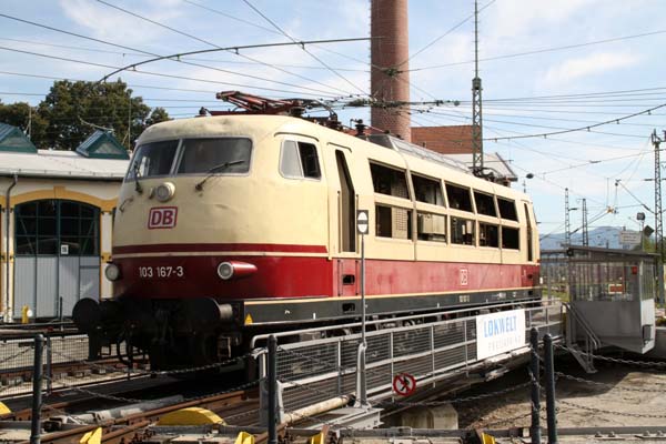 DrehscheibentagIn der Lokwelt fand am 13. September 2015 anlässlich des "Tags des offenen Denkmals" der vierte Drehscheibentag statt. U.a. wurde die 103 167 auf der Drehscheibe gezeigt. Weitere Informationen gibt es hier.