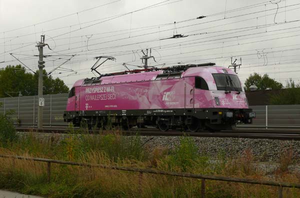 München-Allach, 08.10.2015: Nach der 193 238 wird als nächstes die polnische 370 001 (seit 2014 mit T-Com Werbung) nach neuer HU den Weg nach Ingolstadt antreten