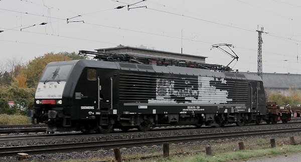 Was kommt denn da hervor? Die 189 150 erhielt November 2009 eine Teilreklame anlässlich des 130. Geburtstags der Elektrolokomotive. Bis 2012 war sie in dieser Form unterwegs. Dann überklebte der neue Mieter AWT die Werbung mit seinen AWT-Logos. Nachdem die Lok mittlerweile bei DB Schenker im Einsatz steht, wurden die orangen AWT-Logos wieder entfernt, dabei kam die alte Siemens-Werbung aus dem Jahr 2009 wieder zuum Vorschein. Allerdings zeigt die Lok so einen eher weniger werbewirksamen Auftritt. Die Aufnahmen entstanden am 27. Oktober 2015 in Mainz-Kastel.