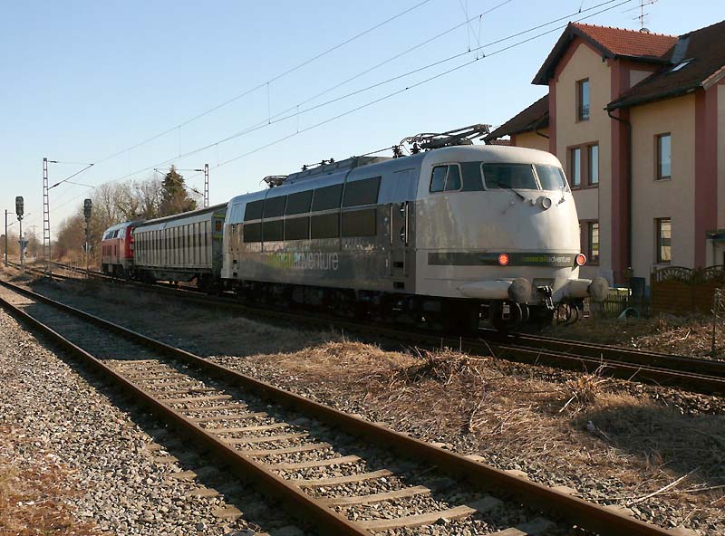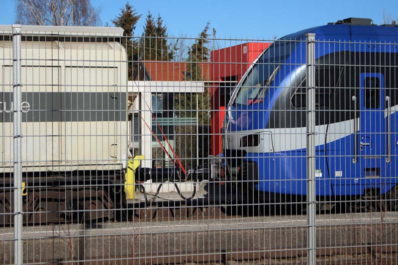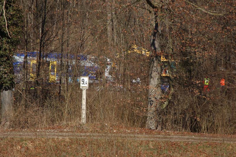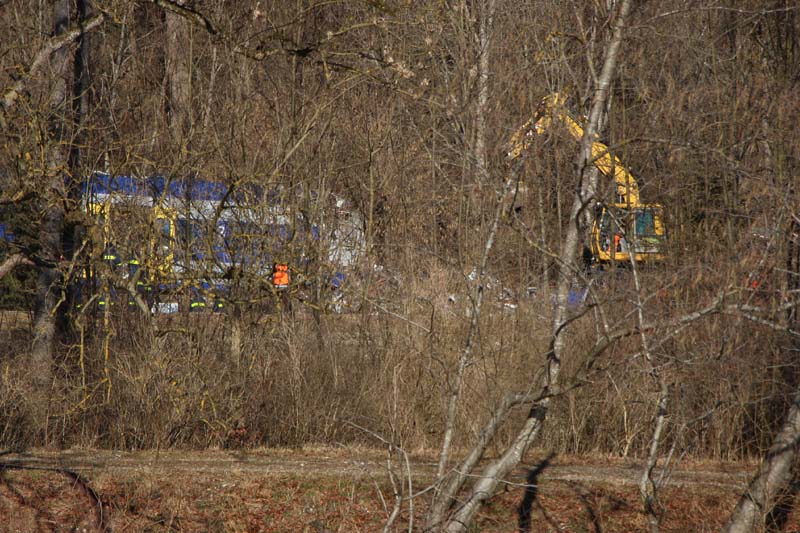 Bad Aibling: Abtransport der ersten Fahrzeuge am 12. Februar 2016Während in Bad Aibling die Bergungsarbeiten der total verkeilten Trümmer der beiden verunglückten Meridian-Züge in vollem Gange sind, wurde bereits die noch rollfähige Zugeinheit von der Unglücksstelle zum Bf. Heufeld zurückgezogen.