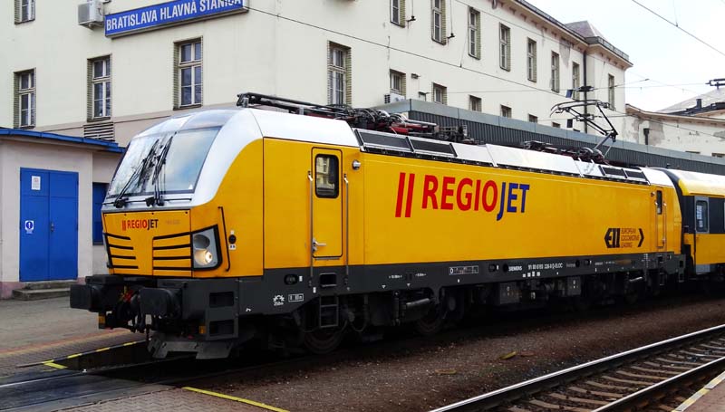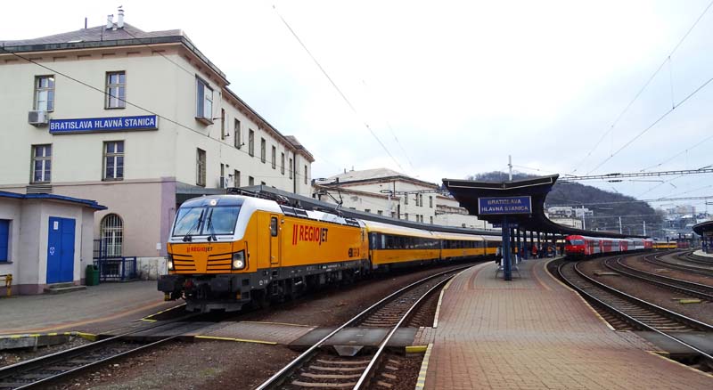 193 226 ist wieder bei RegioJetNach einem mehrtägigen Einsatz beim österreichischen EVU SLB im Salzburgerland ist die 193 226 nun wieder in ihrem Stammgebiet unterwegs. Das Bild zeigt die 193.226 mit RJ 409 am 19.3.2016 in Bratislava hl.st..