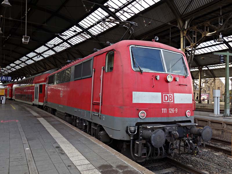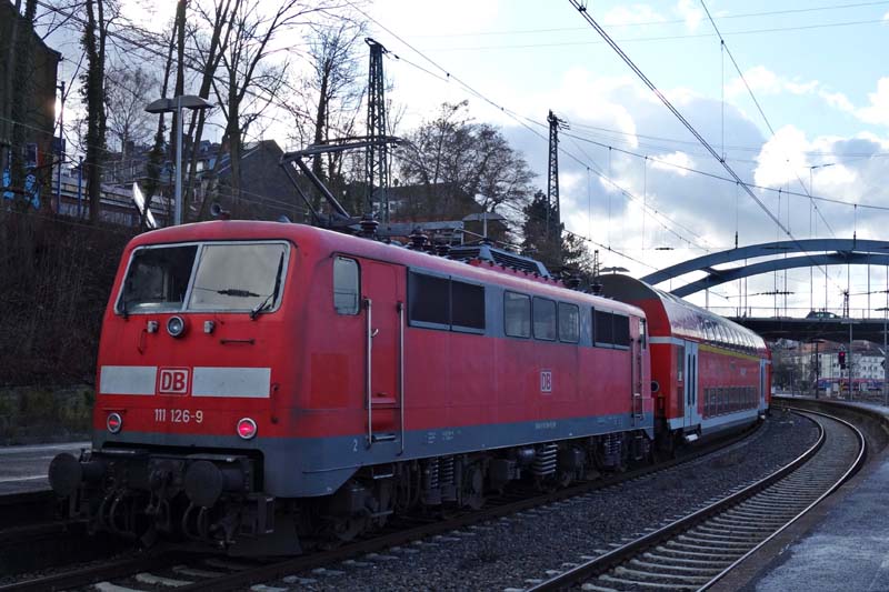 111 126 wieder in NRW im EinsatzDiese Lok habe ich hier lange nicht gesehen und eigentlich sollte sie im Stuttgarter Raum unterwegs sein. Aber es war tatsächlich die 111 126 die am 05.01.2017 in Aachen mit dem RE4 um die Ecke bog.