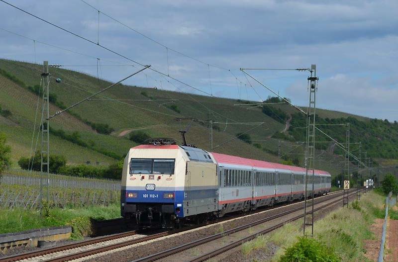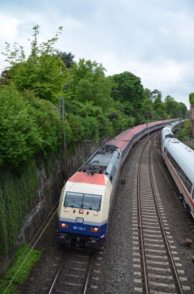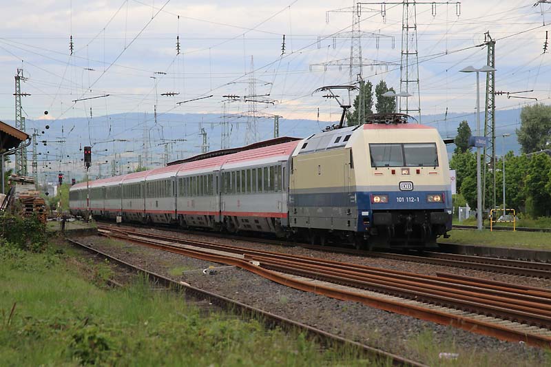 Ein Blick von oben: 101 112 mit 119 Münster - Stuttgart am 12.05.2017 in Mainz Süd (Norbert Basner)