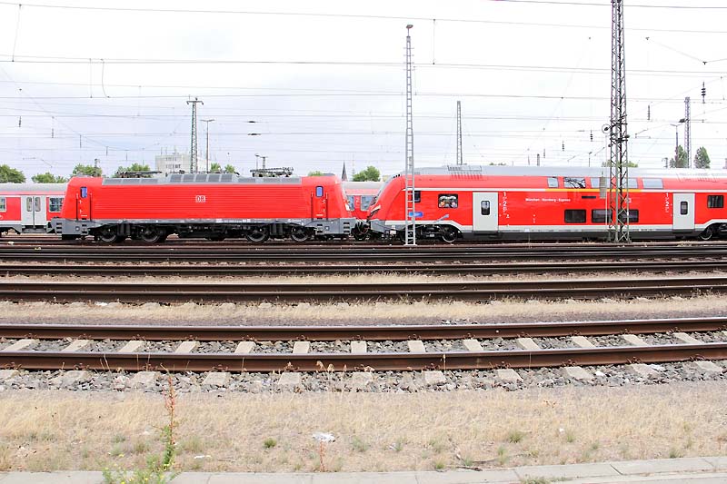 Neue Loks in MannheimDas nähere Umfeld des Mannheimer Hbf. war am 16. Juli 2017 am morgen Treffpunkt für gleich vier neue Triebfahrzeuge und des neuen Wagenparks des München-Nürnberg-Express. So waren die 102 001 und 002 mit der NIM-Garnitur abgestellt: