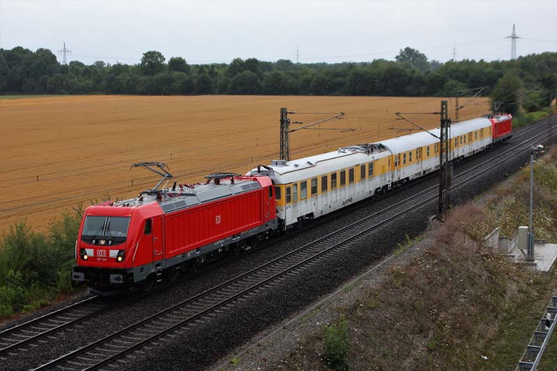 Anschließend Standortwechsel zur Eschenrieder-Spange, hier fanden zwischen München-Nord und Augsburg Meßfahrten mit 187 128 und 187 125 und Meßwagen statt.