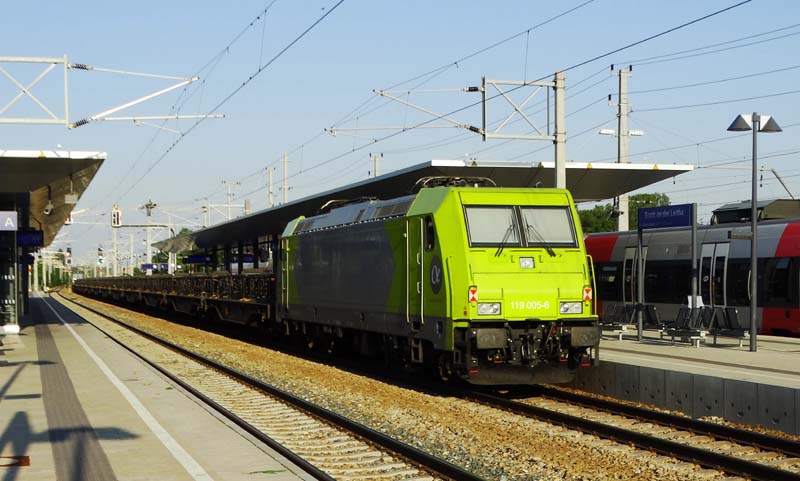 Selten zu sehen: Eine 119 in ÖsterreichEine Rarität gab es am 1.8.2017 auf der Ostbahn Richtung Ungarn zu sehen. Dabei handelte es sich um die ehemalige norwegische Lok 119.005, welche kalt geschleppt am Zugschluß des leeren Kupferzuges bei der Durchfahrt durch Bruck an der Leitha fotografiert werden konnte.