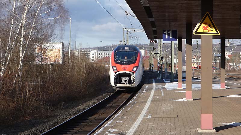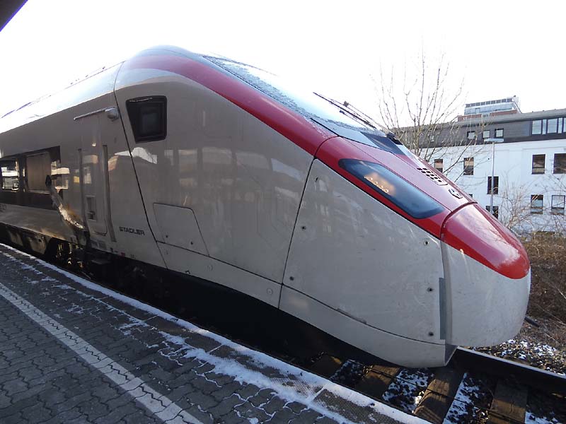 Giruno 501 202 auf Testfahrten in GöttingenZwischen Göttingen und Hannover finden aktuell Testfahrten mit dem Triebzug EC 250 'Giruno' von Stadler statt. Der Zug besteht aus 11 Wagen, 2 Steuerwagen und 9 Zwischenwagen. Ankunft in Göttingen auf Gleis 11 war um 16:24 Uhr, Abfahrt um 16:57 Uhr. Um 18:33 Uhr kam dieser Zug aus Hannover zurück. Die Fahrgäste werden wie üblich mit Sandsäcken simuliert, diesmal aber in Kisten und nicht wie beim ICE 4 mit Sandsäcken auf den Sitzen. Die beigefügten Bilder sollen einen ersten Eindruck von diesem Zug verschaffen.