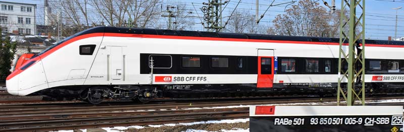 Neues vom Giruno in DeutschlandAm 19. März 2018 kamen gleich zwei solcher Züge durch Frankfurt/M-Süd in Richtung Schweiz. Es waren die Züge SBB RABe 501 005 und 001 (NVR 93 85 1 501 005-7/205-3 und 93 85 1 501 001-6/201-2).