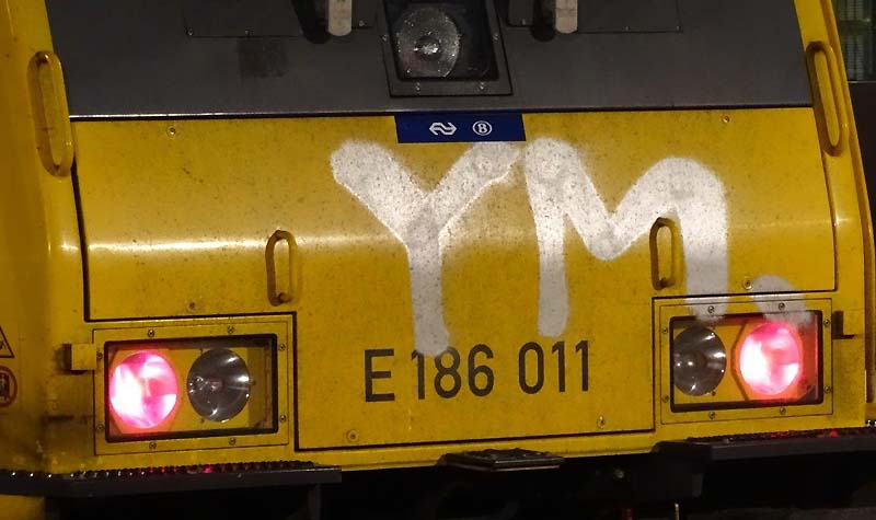 E186 011 NS-B Aufkleber und Front leider mit Graffiti. Rotterdam Centraal am 4. Marz 2019. Quelle:/Fotos: Marcel Kouwenhoven | |