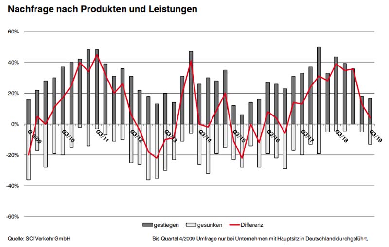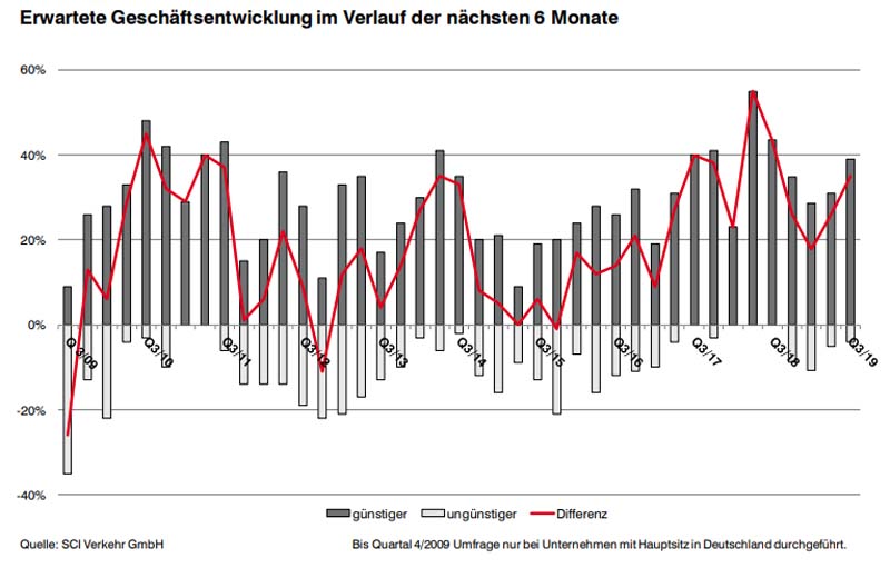 SCI Railindex Quartal III/2019In der Bewertung der aktuellen Geschäftslage folgt auf den starken Rückgang im zweiten Quartal in diesem Quartal ein weiterer, jedoch schwächerer Abwärtstrend. Trotzdem liegt der Differenzwert mit 48% deutlich über dem durchschnittlichen Differenzwert der letzten 10 Jahre (30%), da weiterhin keiner der befragten Top-Manager die aktuelle Geschäftssituation als „unbefriedigend“ einstuft. Der Abschwung in der Bewertung der Nachfrage nach Produkten und Dienstleistungen hat sich im dritten Quartal weiter fortgesetzt. 13% der Befragten gaben in diesem Quartal an, dass die Nachfrage nach Produkten und Dienstleistungen gesunken sei, wohingegen im letzten Quartal nur 5% ein Absinken der Nachfrage beobachtet hatten. Im Gegensatz dazu haben auch 17% geantwortet, dass die Nachfrage nach ihren Produkten und Dienstleistungen gestiegen sei, dieser Anteil ist jedoch ähnlich wie im vorigen Quartal auf dem niedrigsten Niveau seit dem Jahr 2016. Die Umfrage ergab im zweiten Quartal in Folge eine positive Entwicklung im Hinblick auf die erwartete Geschäftslage im nächsten halben Jahr. Der Anteil der Befragten, die mit einer Verbesserung der Geschäftssituation rechnen, ist um 8 Prozentpunkte auf 39% gestiegen. Eine negative Geschäftsentwicklung erwarten hingegen nur 4% der Befragten. Trotz der momentan schwächelnden Gesamtwirtschaftskonjunktur und eines Absinkens der Nachfrage nach Produkten und Dienstleistungen blicken also viele Führungskräfte der Bahnbranche optimistisch in die Zukunft. Darüber hinaus hat SCI Verkehr die Top-Manager der Bahnbranche um eine Bewertung der wichtigsten Einflussfaktoren für die Geschäftsentwicklung der vergangenen zwölf Monate gebeten. Gemäß den Angaben der befragten Unternehmen hatte die Preisentwicklung bei ihren Zulieferprodukten einen negativen Einfluss auf das bestehende Geschäft. In Kombination mit dem wachsenden weltweiten Wettbewerb klagen die Hersteller trotz sehr guter Nachfrage über steigenden Margendruck. Darüber hinaus sehen viele Befragte die bestehenden behördlichen Beschränkungen als Hindernis der Geschäftsentwicklung, obwohl vor dem Hintergrund der Klimakrise weltweit der Druck auf Regierungen zunimmt, regulatorische Hürden im Bahnsektor abzubauen. Aktuelle Einkaufspreise und schwankende Wechselkurse gehören ebenso zu den Faktoren, die in der Umfrage als negative Einflüsse der Geschäftsentwicklung in den letzten 12 Monaten identifiziert wurden. Eine deutliche Mehrheit von 74% der befragten Top-Manager sieht die Verbesserung der Nachfragesituation als positiven Einfluss auf die zurückliegende Geschäftsentwicklung. Legende: Der SCI GLOBAL RAIL INDEX basiert auf ca. 100 Meldungen von repräsentativen Unternehmen aus der weltweiten Bahnbranche. Die Unternehmen werden regelmäßig gebeten, ihre gegenwärtige Geschäftslage zu beurteilen und ihre Erwartungen für die kommenden sechs Monate mitzuteilen. Sie können ihre Lage mit 'gut', 'befriedigend' oder 'schlecht' und ihre Geschäftserwartungen für die kommenden sechs Monaten als 'günstiger', 'gleich bleibend' oder 'ungünstiger' kennzeichnen. Der Saldowert der gegenwärtigen Geschäftslage ist die Differenz der Prozentanteile der Antworten 'gut' und 'schlecht', der Saldowert der Erwartungen ist die Differenz der Prozentanteile der Antworten 'günstiger' und 'ungünstiger'. Das Geschäftsklima ist ein transformierter Mittelwert aus den Salden der Geschäftslage und der Erwartungen. Quelle:/Fotos: SCI Verkehr GmbH | |