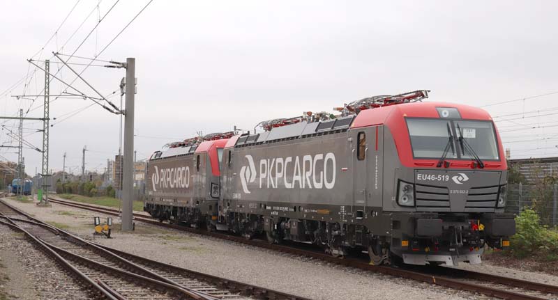 München-Allach, 01.11.2019: Zur Überführung stehen bei Krauss-Maffei bereit 193 918 und 193 913 der Serbia Cargo sowie EU46 519 (5 370 032) und EU46 520 (5 370 033) der PKP Cargo.