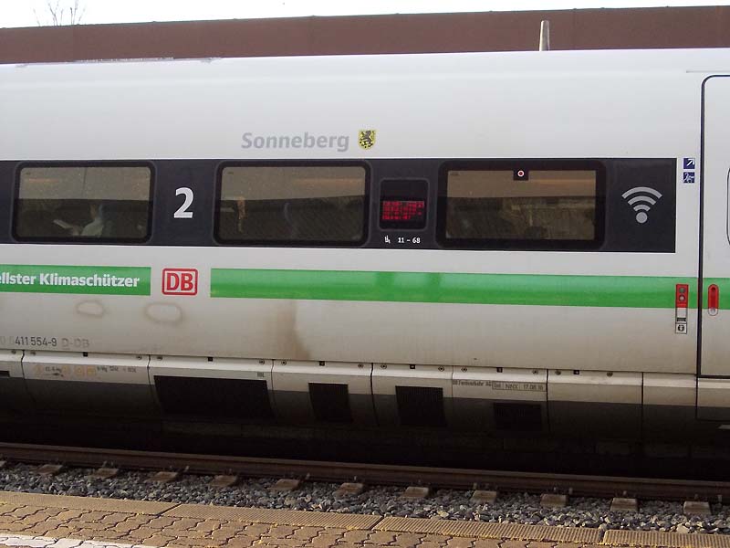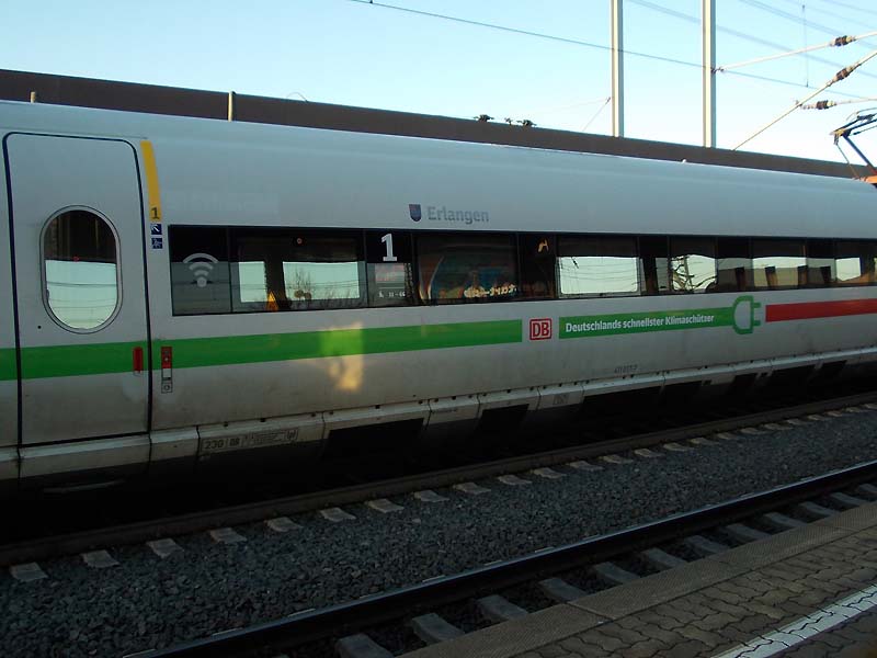 Folgende ICE-Triebköpfe wurden bereits mit grünem Streifen gesichtet (mit Belegaufnahme): Tz 1104 'Erfurt' am 26.11.2019 (mit 411 504 und 006) Tz 1105 'Dresden' am 03.12.2019 Tz 1112 'Freie Hansestadt Hamburg' am 30.11.2019 Tz 1117 'Erlangen' am 29.12.2019 Tz 1118 'Plauen/Vogtland' am 20.11.2019 Tz 1119 'Meißen' am 03.02.2020 Tz 1126 'Leipzig' am 02.01.2020 Tz 1131 'Trier' am 19.11.2019 Tz 1132 'Wittenberge' am 29.11.2019 Tz 1154 'Sonneberg' am 01.01.2020 Tz 1162 'Vaihingen an der Enz' am 28.12.2019 Tz 1163 'Ostseebad Binz' am 20.11.2019 Tz 1165 'Bad Oeynhausen`, 28.11.2019 Tz 1167 'Traunstein' am 22.11.2019 Tz 1168 'Ellwangen' am 24.11.2019 Tz 1180 'Darmstadt' am 25.11.2019. Tz 1183 'Oberursel/Ts' am 23.11.2019 Tz 1504 'Heidelberg' am 28.11.2019 - nicht vollständig beklebt! Tz 1506 'Kassel' am 03.12.2019 Tz 1523 'Hansastadt Greifswald' am 19.11.2019 Tz 1581 ''Horb an Neckar' am 27.11.2019 (mit 411 081 und 411 505) Unbestätigt umgeklebt (noch ohne Sichtung) sind folgende Züge: BR 411: 1101-1113, 1117-1119, 1123, 1126-1127, 1130-1132, 1151-1154, 1157-1160, 1162, 1163, 1165, 1167-1170 1172-1174, 1176-1178, 1180-1183, 1190-1192* BR 412: 9009, 9024**, 9026, 9034** BR 415: 1503 und 1524 * Bei Tz 1154 und 1164 ist nur ein Tk beklebt. ** ganzer Zug mit grünem Streifen Quelle:/Fotos: Lok-Vogel Redaktion | |