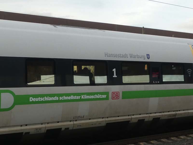Folgende ICE-Triebköpfe wurden bereits mit grünem Streifen gesichtet (mit Belegaufnahme): Tz 1102 'Neubrandenburg' (09.01.2020) Tz 1104 'Erfurt' am 26.11.2019 (mit 411 504 und 006) Tz 1105 'Dresden' am 03.12.2019 Tz 1111 am 11.01.2020 Tz 1112 'Freie Hansestadt Hamburg' am 30.11.2019 Tz 1117 'Erlangen' am 29.12.2019 Tz 1118 'Plauen/Vogtland' am 20.11.2019 Tz 1119 'Meißen' am 03.02.2020 Tz 1126 'Leipzig' am 02.01.2020 Tz 1131 'Trier' am 19.11.2019 Tz 1132 'Wittenberge' am 29.11.2019 Tz 1154 'Sonneberg' am 01.01.2020 Tz 1157 'Innsbruck' am 13.01.2020 Tz 1160 'Markt Holzkirchen' am 13.01.2020 Tz 1162 'Vaihingen an der Enz' am 28.12.2019 Tz 1163 'Ostseebad Binz' am 20.11.2019 Tz 1165 'Bad Oeynhausen`, 28.11.2019 Tz 1167 'Traunstein' am 22.11.2019 Tz 1168 'Ellwangen' am 24.11.2019 Tz 1174 'Hansestadt Warburg' am 11.01.2020 Tz 1176 'Coburg. Göttingen' am 11.01.2020 Tz 1180 'Darmstadt' am 25.11.2019. Tz 1183 'Oberursel/Ts' am 23.11.2019 Tz 1504 'Heidelberg' am 28.11.2019 - nicht vollständig beklebt! Tz 1506 'Kassel' am 03.12.2019 Tz 1523 'Hansastadt Greifswald' am 19.11.2019 Tz 1581 ''Horb an Neckar' am 27.11.2019 (mit 411 081 und 411 505) Unbestätigt umgeklebt (noch ohne Sichtung) sind folgende Züge: BR 403: Tz 337 BR 411: 1101-1113, 1117-1119, 1123, 1126-1127, 1130-1132, 1151-1154, 1157-1160, 1162, 1163, 1165, 1167-1170 1172-1174, 1176-1178, 1180-1183, 1190-1192* BR 412: 9009, 9024**, 9026, 9034**, 9041 BR 415: 1503 und 1524 * Bei Tz 1154 und 1164 ist nur ein Tk beklebt. ** ganzer Zug mit grünem Streifen Quelle:/Fotos: Lok-Vogel Redaktion | |