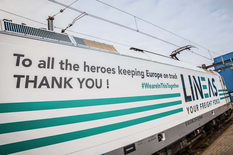 Jeroen Spruyt, Director Locomotives & Wagons bei Lineas: „Das ist unsere Art, den vielen tapferen Menschen, die in dieser Krise an vorderster Front arbeiten, Dankeschön zu sagen. Allen voran natürlich dem medizinischen Personal, aber auch Leuten in anderen systemrelevanten Zweigen, wie Supermärkten, Apotheken oder im Transportwesen. Auch im harten Berufsalltag bei Lineas sind Hunderte Leute im Einsatz, um lebenswichtige Güter wie Nahrung, Medikamente und Desinfektionsmittel zu befördern. Wir werden das alle zusammen durchstehen und wir hoffen, dass diese Lokomotive jedem Mut macht, der sie sieht.“ Die symbolische Geste von Lineas kommt zu einem kritischen Zeitpunkt für den Schienengüterverkehr und die betroffenen Betreiber. So ist die Nachfrage um 20 bis 30 % zurückgegangen, weil viele Unternehmen ihre Produktion eingestellt haben. Daher richten die Schienengüterverkehrsunternehmen nun den Appell an die belgische Regierung, den Sektor in seiner wichtigen Aufgabe zu unterstützen. Raphaël de Visser, Pressesprecher von Lineas: „Wir nehmen unsere Verantwortung sehr ernst. Unsere Arbeitskräfte sind nicht nur ein unverzichtbarer Dreh- und Angelpunkt in dieser Krise, sondern sie werden es auch danach sein, wenn der Schienengüterverkehr helfen wird, unsere Wirtschaft und Gesellschaft wieder aufzubauen. Und vergessen wir nicht unsere entscheidende Rolle in der Umsetzung der belgischen Klimaziele mit der Verdoppelung des Transportvolumens per Bahn. Wir bitten die Regierung daher, die Helden des Schienengüterverkehrs zu unterstützen.“ Sofort nach ihrer Enthüllung nimmt die Lokomotive ihren Betrieb im Green Xpress Network von Lineas auf, um Güter an Ziele in ganz Europa zu transportieren. Eisenbahnbegeisterte sollten wissen, dass die Routen dieser Lokomotive erst nach Aufhebung der Lockdown-Maßnahmen in den Durchfahrtsländern bekannt gegeben werden.
