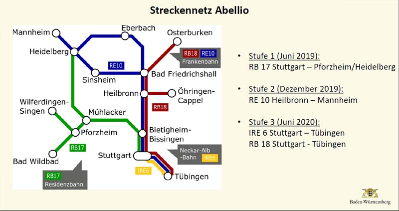 Verkehrsminister Winfried Hermann MdL und Abellio BW Geschäftsführer Rolf Schafferath haben heute (27. Mai) das neue Verkehrsangebot auf der Neckar-Alb-Bahn Stuttgart – Tübingen vorgestellt, das am 14. Juni startet. Abellio übernimmt zu diesem Zeitpunkt einen wesentlichen Teil der bisher auf dieser Strecke von der DB Regio erbrachten Verkehre. Das Unternehmen hatte das entsprechende Los der vom Land durchgeführten Ausschreibung der Stuttgarter Netze gewonnen. Die Fahrgäste können sich ab Mitte Juni auf deutliche Angebotsverbesserungen zwischen Stuttgart und Tübingen freuen. Der bisher nur zweistündliche verkehrende schnelle IRE Stuttgart-Tübingen (-Sigmaringen) fährt künftig im Stundentakt verdichtet. „Dieser schnelle IRE verbindet Tübingen mit Stuttgart in nur 45 Minuten: ein starkes Angebot für eine stark nachgefragte Strecke“, sagte Verkehrsminister Winfried Hermann. Zudem wird der Regionalexpress, der bisher nur zur Hauptverkehrszeit im Halbstundentakt verkehrt, künftig an allen Werktagen durchgehend bis 20 Uhr (an Samstagen bis 18 Uhr) im 30-Minuten-Takt angeboten. Leider sind durch den Fahrzeughersteller Bombardier bisher nicht alle Fahrzeuge des Typs Talent geliefert worden, um alle Linien von Abellio vollständig mit Neufahrzeugen bedienen zu können. Stand heute, 27. Mai, hat der Hersteller erst insgesamt 27 Fahrzeuge an Abellio übergeben, davon sind momentan 23 abgenommen und damit einsatzfähig. Bis zur dritten Inbetriebnahme kündigt Bombardier die Lieferung von drei weiteren Fahrzeugen an, die vorbehaltlich ihrer Abnahme zur Verfügung stehen. Ausstehend ist auch die vollständige Zulassung der Fahrzeug-Flotte in Mehrfach- und Mischtraktion, wodurch Abellio die bereits vorhandenen Neufahrzeuge zunächst nicht vollumfänglich zum Einsatz bringen kann. „Abellio hat sich aber rechtzeitig mit Unterstützung des Landes um Ersatzfahrzeuge gekümmert. Deshalb können wir trotz des Lieferverzuges von Bombardier alle Angebotsausweitungen wie geplant umsetzen“, erläuterte Minister Hermann. Unter großem planerischen und finanziellen Aufwand hat Abellio ein Ersatzkonzept erstellt, das auch diese Betriebsaufnahme sicherstellt. „Bombardier möchte sich für die Verzögerungen bei der Auslieferung entschuldigen, insbesondere auch bei den hiervon betroffenen Fahrgästen. Der Auftrag, TALENT 2-Züge für das Neckartal zu liefern, ist für Bombardier von herausragender Bedeutung. Daher haben wir nun auch unser Werk in Bautzen als zusätzlichen Fertigungsstandort einbezogen. Mein Team hat trotz Corona-Einschränkungen alles getan, um unsere Produktion aufrechtzuerhalten, sodass bislang 27 Züge ausgeliefert werden konnten. Diese Züge überzeugen besonders durch ein großzügiges Raumkonzept, was heute wichtiger ist als je zuvor“, so Michael Fohrer, Deutschlandchef bei Bombardier Transportation. „Wir hätten uns für unsere Fahrgäste und Mitarbeiter sehr gewünscht, wenigstens in unserer dritten und finalen Betriebsaufnahmestufe wie geplant mit modernen und komfortablen Neufahrzeugen im Regelbetrieb an den Start gehen zu können“, sagt Rolf Schafferath, Vorsitzender der Geschäftsführung der Abellio Rail Baden-Württemberg GmbH. „Wir hatten uns früh darauf eingestellt, dass der Hersteller seinen Lieferverzug nicht aufholen wird, so dass uns das jetzt nicht aus der Bahn wirft. Auch wenn Bombardier in den kommenden vier Wochen kein einziges Fahrzeug mehr liefert, können wir dank unseres Ersatzkonzeptes dennoch starten und alle Verkehre bedienen“, betont Schafferath. Als Ersatzfahrzeuge kommen von der DB angemietete Elektrotriebwagen der Baureihen 425 und 426 sowie von Dritten angemietete Lok-Wagen-Garnituren zum Einsatz. Die DB wird auf der Neckar-Alb-Bahn weiterhin den IRE-Langläufer von Stuttgart über Tübingen und Sigmaringen nach Aulendorf betreiben. Ebenso fährt sie weiterhin die von Herrenberg kommende RB bis nach Metzingen/Bad Urach. „Wir freuen uns als DB Regio auch in den Landkreisen Tübingen und Reutlingen weiterhin Partner des Landes sein zu dürfen. Unseren Fahrgästen auf der RE-Strecke Tübingen – Stuttgart danken wir für die Treue. Unverändert bieten wir mit unserer IRE-Linie Aulendorf – Tübingen – Stuttgart mit unseren Neigetechnikzügen ein schnelles Angebot in die Landeshauptstatt“, so Markus Kaupper, Verkehrsvertragsmanager der DB Regio AG. Der bisherige RB-Halt in Oberboihingen wird künftig stündlich von Abellio bedient. Oberboihingen erhält damit eine schnelle Direktverbindung sowohl nach Tübingen als auch nach Stuttgart. Diese war auch für Bempflingen vorgesehen. Allerdings können die Ersatzfahrzeuge an den kurzen Bahnsteigkanten in Bempflingen nicht halten, da sich bei ihnen im Gegensatz zu den Bombardier-Fahrzeugen das Öffnen der Türen nicht auf nur bestimmte Eingangsbereiche beschränken lässt. Dort wird daher ersatzweise ein Schienenersatzverkehr mit Bussen eingerichtet. Nur bei einzelnen Fahrten am frühen Morgen und in den Abendstunden ist ein Halt in Bempflingen möglich. „Sobald Bombardier aber genügend Fahrzeuge geliefert hat, wird Bempflingen wieder auf der Schiene bedient“, sagte Verkehrsminister Hermann. Auf der Linie RE 10 a/b kommen zwischen Mannheim und Heilbronn Talent 2-Neufahrzeuge zum Einsatz. Von Heilbronn bis nach Tübingen verkehren Ersatzzüge des Subunternehmens WFL (Wedler Franz Logistik GmbH & Co. KG) und der TRI (Train Rental International GbR) sowie vereinzelt Talent 2-Neufahrzeuge. Hier ist – wie bisher auch – ein Umstieg am Heilbronner Hauptbahnhof erforderlich. Der IRE 6 von Stuttgart nach Tübingen wird durch das Subunternehmen Wedler Logistik im Unterauftrag von Abellio gefahren. Die Untervergabe einzelner Verbindungen ist erforderlich, da nicht ausreichend Leihfahrzeuge erhältlich sind, um den vollen Leistungsumfang abzudecken. Die Linie RB 17 a/b/c (Stuttgart – Pforzheim/Heidelberg) wird von Abellio auch weiterhin mit Neufahrzeugen befahren.