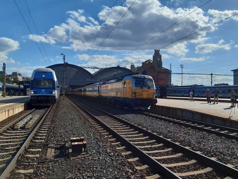 ![]() Prag ist ein Ort, an dem sich moderne Vectron-Lokomotiven im Personenverkehr in verschiedenen Farben im Dienste mehrerer Transportunternehmen treffen. Zum Beispiel gab es heute zwischen 17 und 18 Uhr drei Vectron-Lokomotiven am Hauptbahnhof - gelb, rot und blau. Die gelbe Maschiene (91 80 6193 206-0 D-ELOC) nahm um 17:20 Uhr den Zug RegioJet 1047 Prag - Rijeka,...