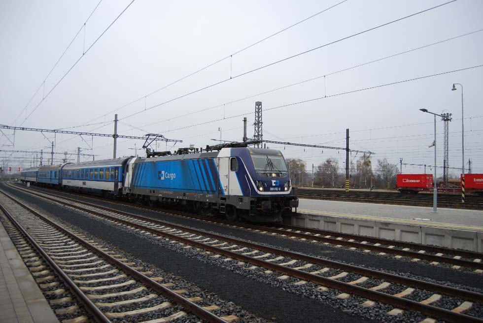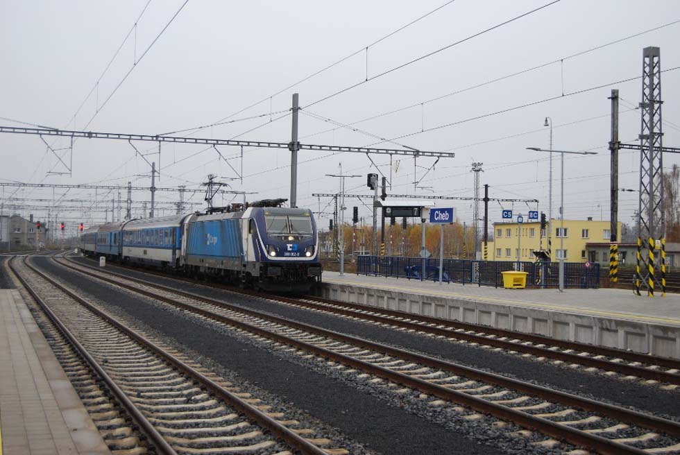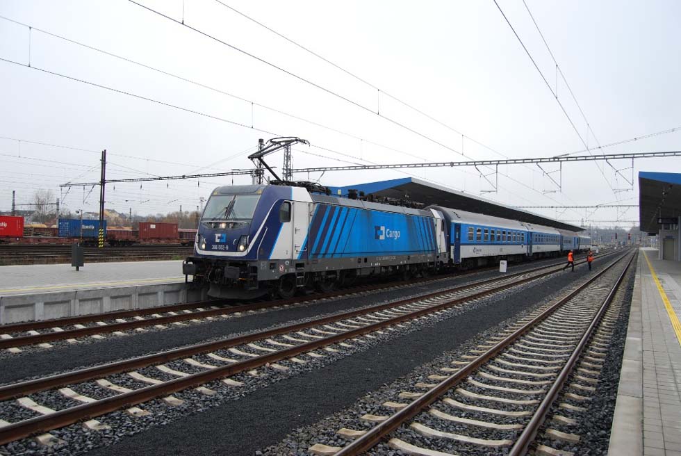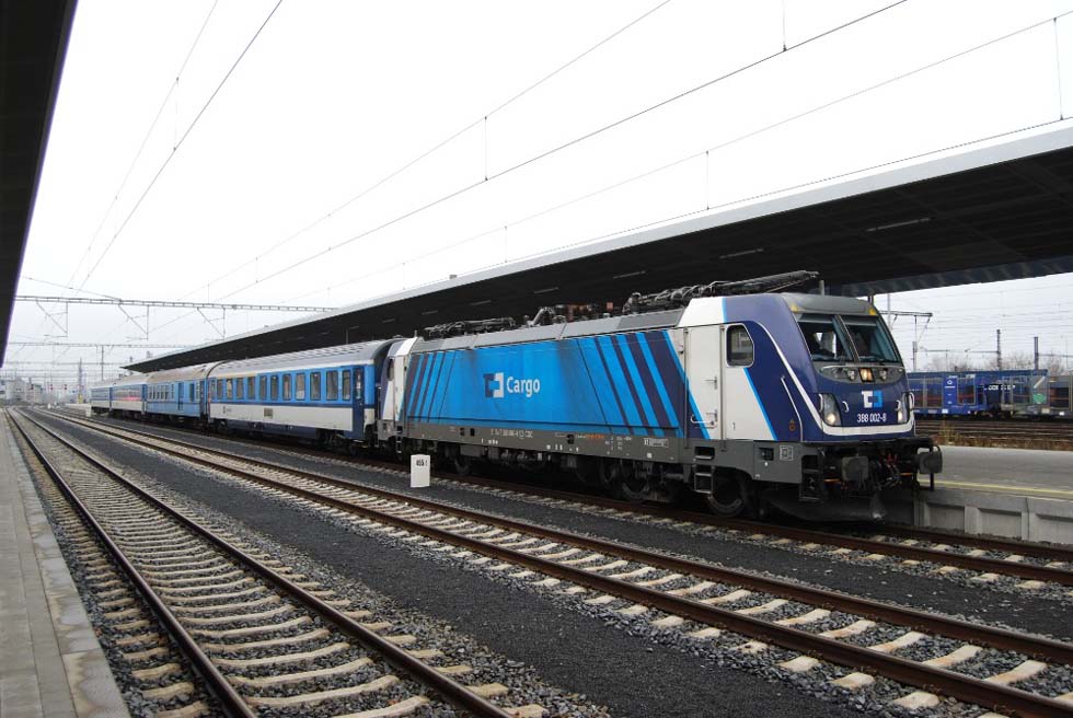 CD Cargo hat am 20. August 2018 einen Vertrag mit Bombardier Transportation GmbH für 10 Mehrsystemelloks der bauart Traxx MS3 und eine Option für weitere 40 Fahrzeuge unterzeichnet. Die Loks werden für den Betrieb in CZ, D, PL, A, SK und HU eingerichtet, für SLO und HR können sie noch später nachgerüstet werden. Die erste Probefahrt mit dem regelmäßigem CD-Cargo-Güterzug wurde am 2. Juli 2020 auf der Linie Ostrava – Ceská T?ebova – Ostrava durchgeführt. Von 10 E-Loks werden zwei Fahrzeuge mit einem besonderen Design ausgestattet. Die Bilder vom 24. November 2020 stellen E-Lok 388.002 während der Wende in Cheb zwischen den Schnellzügen 92616 Karlovy Vary – Cheb und 92613 Cheb – Karlovy Vary vor.