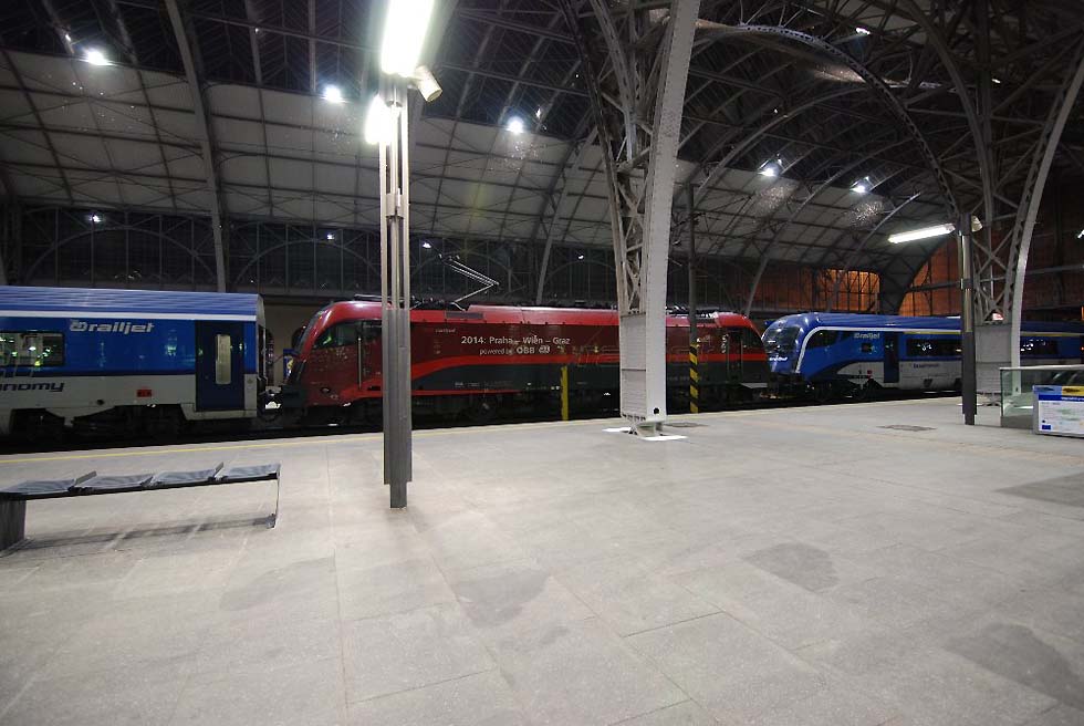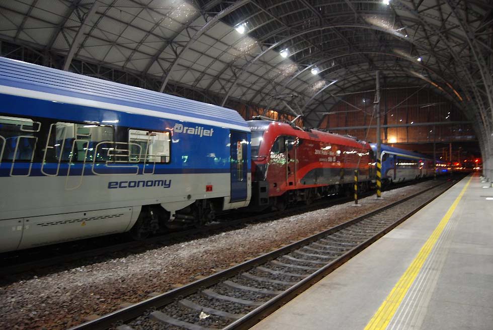 Am 23. Januar 2021 am Nachmittag wurde schon die sechste railjet-Garnitur, die zum ÖBB TS Wien Simmering fährt mit dem Zug RJ 373 Praha – Graz gekuppelt. Von Praha bis Breclav fuhr der Zug in besonderer Reihung E-Lok 1216 – railjet-Garnitur nach Graz und noch eine geschlossene Garnitur zu Instandhaltung. Diese fährt ab Breclav nach Wien wieder als besonderer Zug. Seit Frühling 2014, als der Probebetrieb mit ersten CD-railjets startete, und seit Fahrplan 2015 mit dem regelmäßigen Einsatz hat jede der sieben CD-railjet-Zügen schon ca. 2,4 Millionen Kilometer erreicht, zusammen sind alle Garnituren schon ca. 17 Millionen Kilometer gefahren. Alle 2,4 Millionen Kilometer müssen die Züge zu Revision nach der CD-Stufe R3, früher bezeichnet als Hauptuntersuchung, und bei Siemens bezeichnet als Revision IW6. Die Instandhaltung wurde schon bei den Garnituren 003, 004, 002, 001 und 005 abgecshlossen und die Instandhaltung der Garnituren 006 und 007 wird bis Ende Februar / Anfang März stattfinden. Die CD-railjets fahren z.Z. auf den rj-Zügen Vindobona Berlin – Praha – Wien – Graz. Die Bilder zeigen den Zug RJ 372 Vindobona Graz – Praha nach der Ankunft im Prager Hauptbahnhof am 22. Januar 2021.