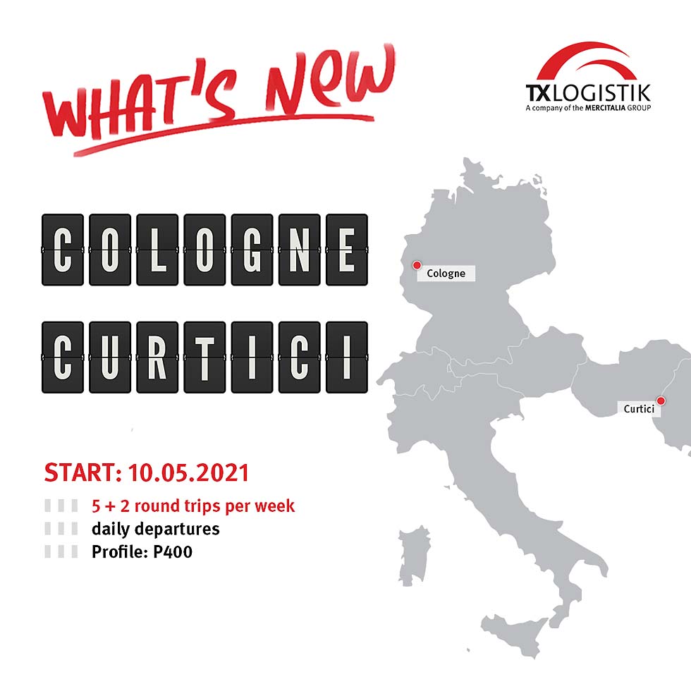 Mit der höheren Frequenz trägt TX Logistik vor allem dem zunehmenden Interesse rumänischer und italienischer Speditionen an Verkehren auf der West-Ost-Verbindung Rechnung. Die Züge verkehren zwischen dem CTS-Container Terminal in Köln-Niehl und dem Trade Trans Terminal in Curtici, das nur wenige Kilometer von der Grenze zu Ungarn entfernt liegt. TX Logistik verantwortet und steuert die gesamte Transportkette. Auf einen Zug passen bis zu 44 Ladeeinheiten. Befördert werden können sowohl Sattelauflieger und Megatrailer als auch Tank-, Bulk- oder 45-Zoll-Container. In Richtung Curtici werden unter anderem Fahrzeugkomponenten transportiert. In der Gegenrichtung sind die Züge hauptsächlich mit Einrichtungsgegenständen und sonstigen Konsumgütern beladen. Auf der Relation setzt TX Logistik auch das Umschlagsystem NiKRASA ein, mit dem sich nicht kranbare Sattelauflieger einfach und schnell auf die Schiene setzen lassen. Bis zu vier NiKRASA-Einheiten werden aktuell im Durchschnitt pro Zug verladen. Die Verbindung Köln – Curtici ist bereits 2018 in das europäische Netzwerk von TX Logistik aufgenommen worden. Zum Start gab es drei Rundläufe pro Woche. Wegen der großen Nachfrage wurde die wöchentliche Frequenz im Laufe der Zeit auf bislang fünf Abfahrten pro Richtung erhöht.