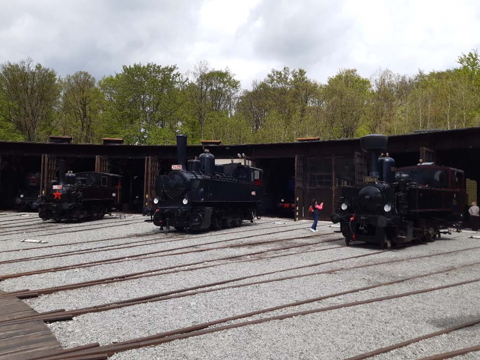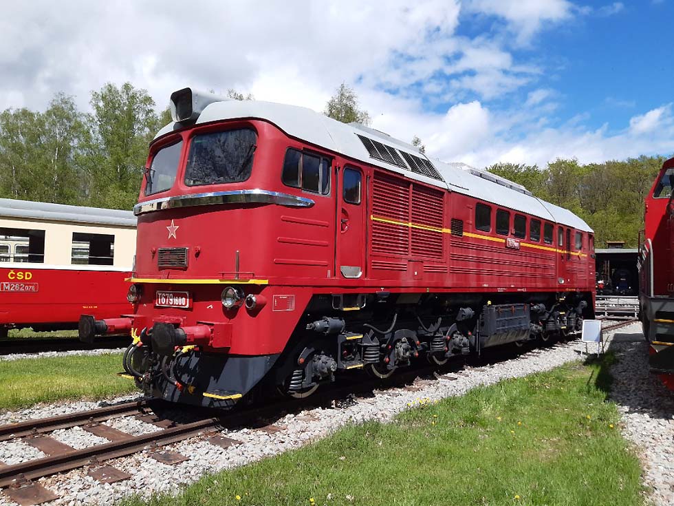 In Eisenbahnmuseum sind viele Dampf-, Diesel- und E-Lok, Triebwagen, Personen- und Güterwagen sowie Schmalspurban ausgestellt. Immer bleibt als ein Schatz in Sammlung ehemalige KkStB-Lok 73.368, bei ?SD 414.096, „Heligon“ vom 1906 (Bild 2), die betriebsfähig ist. In der Sammlung gibt es viele ehemalige österreichische Lokomotive, die seit 1918 weiter bei ?SD gefahren sein (Bilder 3, 4, 5). Eine Neuheit in Exposition ist zwei geschlossener Güterwagen mit Bremserbaude von KFNB und BWB im neuen Glanz (Bild 6). Im Museum sind auch moderne Traktion, wie in mehrere Länder bekannte russische dieselelektrische Güterlokomotive mit verschiedenen Spitznamen wie „Gagarin“, „Taigatrommel“ oder in ehemalige Tschechoslowakei als „Sergej“ bekannt, oder „Laminátka“, die dank PIKO-Modell noch mehr bekannt und populär ist. In Museum steht auch ein „Taucherbrille“ reihe T 478.3 in neuer Rotekleidung (Stand in 1980er) statt grün-grau Schema, die bis letztes Jahr tragt.