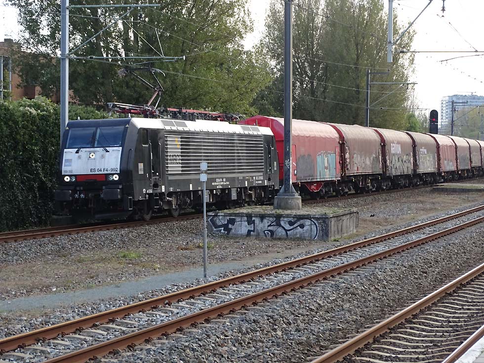 DB 189 092 / MRCE ES F4-992 mit Langem Stahlzug Kijfhoek - Beverwijk in Den Haag Moerwijk .29.10.2021