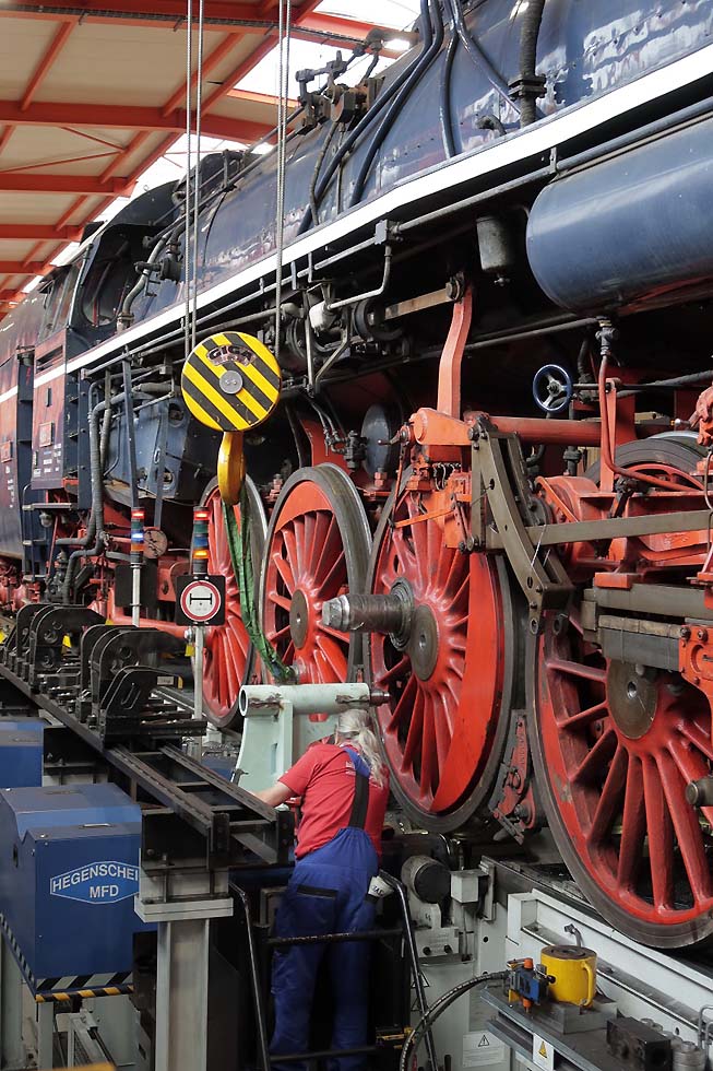 Die moderne Unterflurdrehbank der Tschechischen Eisenbahnen ist die einzige ihrer Art in der Tschechischen Republik. Sie arbeitet im Tandem und ist damit wesentlich schneller als andere vergleichbare Maschinen. Sie dreht Eisenbahnradsätze direkt auf den Fahrzeugen, ohne dass Bauteile demontiert werden müssen, und es können komplette Einheiten zum Drehen hinzugefügt werden, ohne dass sie abgekoppelt werden müssen. 'Die Albatros ist die erste Dampflokomotive, die wir gedreht haben, daher haben die Vorbereitungen sehr viel Zeit in Anspruch genommen. Gelegentlich erhalten wir Fahrzeuge, die noch nicht im normalen Betrieb auf den Strecken sind, sondern noch im VUZ getestet werden. Andere interessante Stücke, die wir gedreht haben, waren zum Beispiel Unterschneider. Die Drehmaschine läuft jeden Tag in der Tagschicht und jeden zweiten Tag in der Nachtschicht. Seit Beginn ihres Einsatzes hat diese Maschine bereits insgesamt 14.976 Achsen gedreht', sagt Frantisek Kozel, Direktor des Regionalen Wartungszentrums von Ceské drahy. Lokomotive 498.104 Albatros Der Slowakische Albatros-Klub kümmert sich um die Lokomotive 498.104 und nutzt sie für historische Fahrten und Treffen, nicht nur in der Slowakei. Die Lokomotiven der Baureihe 498.1 wurden in den Jahren 1954 - 1955 von den Skoda-Werken Pilsen für die Tschechoslowakischen Staatsbahnen im Zusammenhang mit dem wachsenden Umfang des Eisenbahnverkehrs hergestellt. Insgesamt 15 Lokomotiven dieser Baureihe wurden als Ergänzung zu den vierzig im Einsatz befindlichen Schnellzuglokomotiven der bisherigen Baureihe 498.0 gebaut. Die neuere Baureihe 498.1 hält den tschechoslowakischen Dampfgeschwindigkeitsrekord von 162 km/h. Die slowakische Lokomotive 498.104 besuchte die Drehbank zuletzt 1972. 'Die Tschechischen Bahnen verfügen über eine hochmoderne Drehmaschine und einen angenehmen Arbeitsplatz. Kleine, gewöhnliche Räder können überall gedreht werden, aber die großen sind ein Problem, deshalb haben wir den Service bei der Tschechischen Bahn bestellt', sagt Jaroslav Veres, der Vorsitzende des Albatros-Clubs. Milan Bauer, Fahrer des Albatros Clubs und der ZSSK, fügt hinzu: 'Wenn man die Räder schärfen lässt, sind sie so gut wie neu, und das merkt man auch beim Fahren. Die Dynamik ist viel besser, die Lokomotive liegt besser auf den Schienen.'Die neuen Räder der Dampflokomotive sollen am 4. Dezember in ihrer ganzen Pracht präsentiert werden, wenn der Albatros eine Nikolausfahrt in der Nähe von Bratislava unternimmt. Ein Video über das Drehen der Räder finden Sie auf dem YouTube-Kanal der CD Redakce.