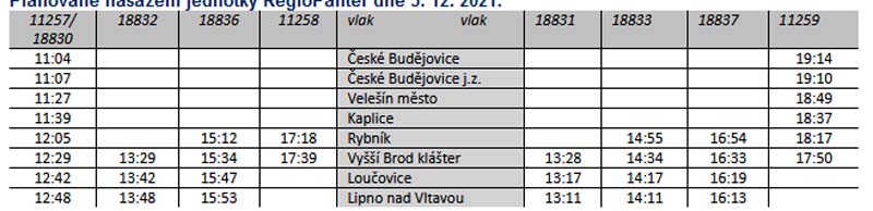 'Diese modernen Züge werden an den Wochenenden unregelmäßig auf der Strecke eingesetzt, um die technischen Möglichkeiten eines zukünftigen Dauerbetriebs auf dieser Strecke zu testen. Dies würde die Einführung von komfortablen Direktzügen von Ceske Budejovice über Rybník nach Lipno nad Vltavou ermöglichen, was auch zur weiteren Entwicklung der Region Lipno beitragen kann', sagt Martin Hurajcík, Direktor des Regionalen Handelszentrums West von Ceské drahy. Der Probebetrieb beginnt mit einem Sonderzug, der am Sonntag, den 5. Dezember um 11:04 Uhr von Ceske Budejovice nach Rybnik und weiter nach Lipno nad Vltavou fährt. In der Folge wird die RegioPanter-Einheit an diesem Tag auf weiteren ausgewählten Linienzügen zwischen Rybnik und Lipno zum Einsatz kommen. Die Rückfahrt in die Landeshauptstadt erfolgt als Sonderzug, der um 17:50 Uhr am Bahnhof Vyssi Brod Klaster abfährt und um 19:14 Uhr in Ceske Budejovice ankommt. RegioPanter sind moderne, rollstuhlgerechte Elektrofahrzeuge mit klimatisiertem Innenraum. Außerdem bieten sie den Fahrgästen ein bordeigenes Wi-Fi-Netz, Steckdosen zum Aufladen von Reiseelektronik und Plätze für den Transport von Kinderwagen und Fahrrädern. Der derzeitige Bestand von vier RegioPanter-Einheiten in der Region Südböhmen wird im Jahr 2022 durch 10 brandneue Züge ergänzt werden. In Sonderzügen und im Linienverkehr gilt der reguläre Tarif der CD. Geplante Inbetriebnahme der RegioPanter-Einheit am 5. Dezember 2021:
