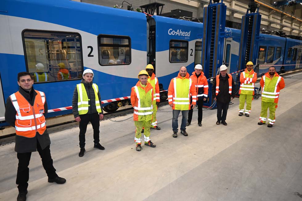 Dort wird ab sofort die Firma TMH Germany die Flotte von Go-Ahead Bayern warten. Dies ist für den Start des Zugverkehrs eine wichtige Aufgabe, wird doch jedes der 22 Fahrzeuge für das E-Netz Allgäu pro Jahr im Durchschnitt um die 180.000 Kilometer zurücklegen – da müssen alle technischen Teile regelmäßig gewartet werden. „Wir von Go-Ahead gratulieren unseren Partnern von TMH Germany zum Start in ihrem Betriebswerk in Langweid. Es ist gut, dass wir sie an unserer Seite haben“, sagte anlässlich der ersten Zugfahrt ins Betriebswerk Gordon Lemke, Technischer Geschäftsleiter von Go-Ahead Bayern. Auch bei TMH ist man sehr froh und auch ein bisschen stolz, dass die Arbeit im Betriebswerk nun losgehen kann. „Wir freuen uns, dass heute der erste Betriebszug der Go-Ahead-Flotte in unserem Instandhaltungswerk in Langweid am Lech eingetroffen ist. Damit können die Wartungsaktivitäten am 12. Dezember wie geplant losgehen“, so Klaus Eberhard Hock, Geschäftsführer von TMH Germany. „In den vergangenen Monaten haben wir diesen Termin intensiv vorbereitet. Wir danken dem hervorragenden Team von Go-Ahead für das Vertrauen und wünschen zur Aufnahme des Fahrbetriebs allzeit gute Fahrt!“. Im Dezember 2022 wird Go-Ahead dann auch den Zugverkehr auf den elektrischen Strecken rund um Augsburg aufnehmen; dazu werden derzeit weitere 56 Triebzüge durch den Hersteller Siemens gebaut, die dann ebenfalls in Langweid gewartet werden.