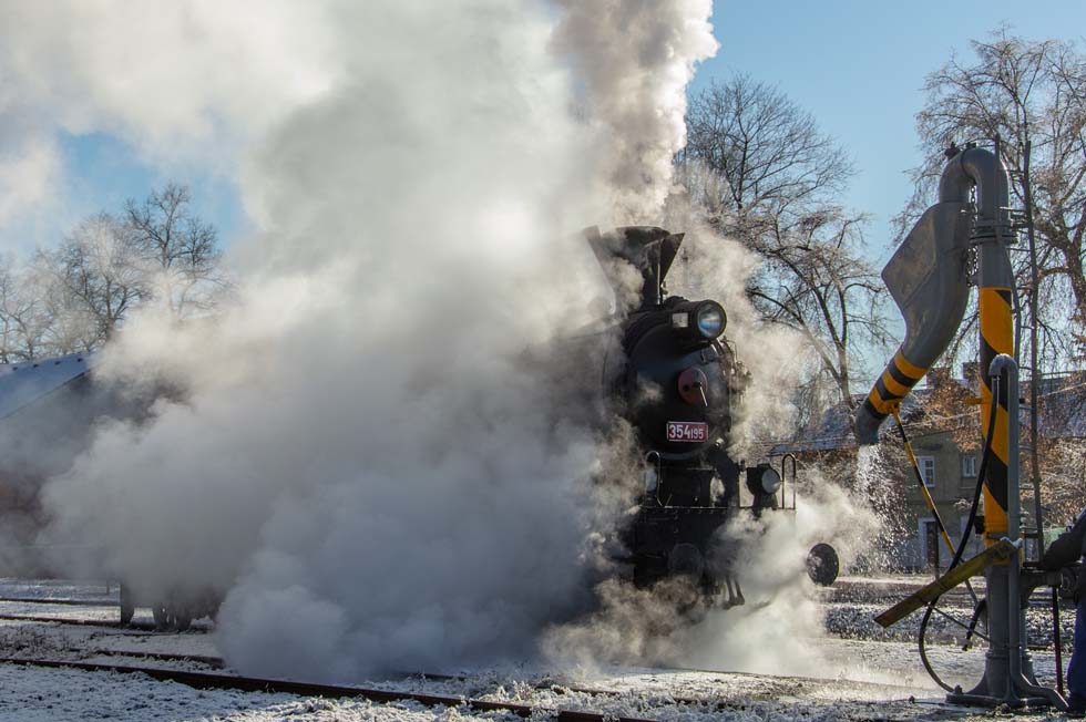 Diese Dampflokomotive war eine beliebte Lokomotive für Personenzüge und leichte Schnellzüge, vor allem wegen ihrer einfachen Bedienung. Diese Lokomotiven waren eine der erfolgreichsten Lokomotiven der CSD, sie hatten fast keine Ausfälle, waren zuverlässig, schnell und wirtschaftlich. Aufgrund ihrer weiten Verbreitung erhielten sie den Spitznamen Vsudybylka. Die Lokomotive wurde zwischen 1913 und 1941 in mehreren Serien und Modifikationen hergestellt. Das letzte Exemplar beendete 1978 seinen regulären Dienst. Die Lokomotive 354.195 wurde 1925 gebaut und hat eine Geschwindigkeit von 90 km/h, einen Kesseldampfdruck von 13 bar, ein Dienstgewicht von 85 Tonnen und eine Leistung von 1150 PS. Die Mitarbeiter des CD-Museums in Luzna u Rakovníka arbeiten derzeit an der Fertigstellung der Reparaturen an der Dampflokomotive 423.009 Velky bejcek. Der voraussichtliche Fertigstellungstermin ist Januar nächsten Jahres. Diese Lokomotive wird dann nach Ceská Trebová zurückkehren, wo sie zu Hause ist.
