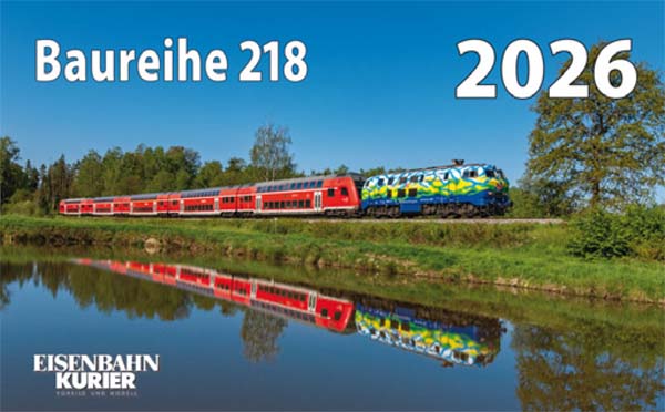 Baureihe 218 – 2026 Die „Zwo-Achtzehn“ steht bei Eisenbahnfreunden hoch im Kurs. Ob noch in den letzten Einsatzrevieren bei der DB AG oder auch in neuen Diensten bei immer mehr privaten Nachbesitzern – die Maschinen zeigen sich bunter denn je! 13 farbige Kalenderblätter auf Kunstdruckpapier,